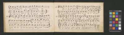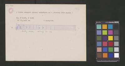 [pl-text: Do rękopisu dołączone dwie karty katalogowe z incipitem "Kiedy ranne wstają zorze".], [pl-text: W prawym górnym rogu wszystkich kart wpisana ołówkiem foliacja.], [pl-text: Pieczęć okrągła o treści "ARCHIWUM I BIBLIOTEKA | Krakowskiej Kapituły Katedralnej | KK.I. | 751/1-9]" na drugiej stronie obwoluty wszystkich partii.], [pl-text: Mała, czerwona, owalna pieczęć "CATH. CRAC. * ARCH. CAPIT." na stronach 12r, 22v, 31r, 38v, 43r, 45r, 50r, 54v, 58r, 75r, 79r, 80r, 86r, 88r, 93r, 95r, 97v oraz na wakacie przed 55r.], [pl-text: Pieczęć okrągła z herbem Trzy korony, o treści „SIGILLUM CAPITULI CATHEDRALIS CRACOVIENSIS” na pierwszej stronie obwoluty wszystkich partii bez partytury, na stronach 1r, 24r, 39v, 55r oraz na wakacie po 97v.]