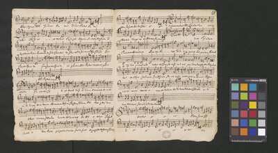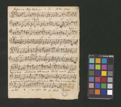 [pl-text: Pieczęć: „ARCHIWUM I BIBLIOTEKA”, „Krakowskiej Kapituły Katedralnej” wraz z wpisana ołówkiem sygnaturą umieszczona na drugiej stronie okładki. Pieczęć: „CATH. CRAC. * ARCH. CAPIT.” umieszczona na wszystkich kartach.], [pl-text: Foliacja w źródle naniesiona ołówkiem.], [pl-text: F. 3, 12 mniejsze niż pozostałe, są to przycięte kawałki kart.], [pl-text: Okładka dodana w okresie późniejszym.]