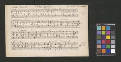 [pl-text: Pieczęć okrągła o treści "ARCHIWUM I BIBLIOTEKA | Krakowskiej Kapituły Katedralnej | KK-I | -772" na drugiej stronie.], [pl-text: Mała, czerwona, owalna pieczęć "CATH. CRAC. * ARCH. CAPIT." w prawym górnym rogu pierwszej strony.], [pl-text: Na pierwszej stronie w prawym górnym rogu inskrypcja "harmoniz. M. Woźny".]