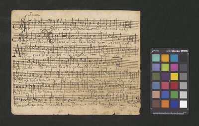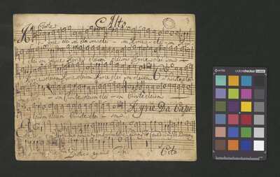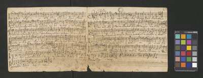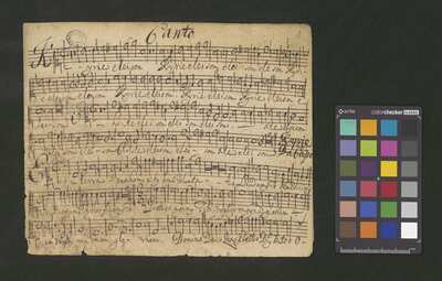 [pl-text: na wewnętrznej stronie obwoluty okrągła pieczęć: „ARCHIWUM I BIBLIOTEKA * Krakowskiej Kapituły Katedralnej”], [pl-text: na wybranych kartach rękopisu owalna pieczęć: „CATH. CRAC. * ARCH. CAPIT.”], [pl-text: f. 5r, 7r: nad początkiem partii Tenore oraz Basso adnoatacja: "à Capella"]