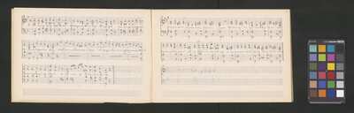 [pl-text: Partytura na instrument klawiszowy z akompaniamentem do utworów wokalnych, zapisany tekst.], [pl-text: Przednia i tylna okładka.], [pl-text: Foliacja ołówkiem w prawym górnym rogu kart.], [pl-text: Na drugiej stronie okładki pieczęć: „ARCHIWUM I BIBLIOTEKA”, „Krakowskiej Kapituły Katedralnej”.], [pl-text: Na karcie 6r pieczęć: „CATH. CRAC. * ARCH. CAPIT.”], [pl-text: Po zakończeniu wpisu na karcie 1r: "15.8.40"; na karcie 2r: "18.8.40"; na karcie 3r: "22.8.40"; na karcie 6r: "24.8.40 | H[M?]W".], [pl-text: Na kartach 6v-36v puste pięciolinie.], [pl-text: Na czwartej stronie okładki: "Do Świętych".]