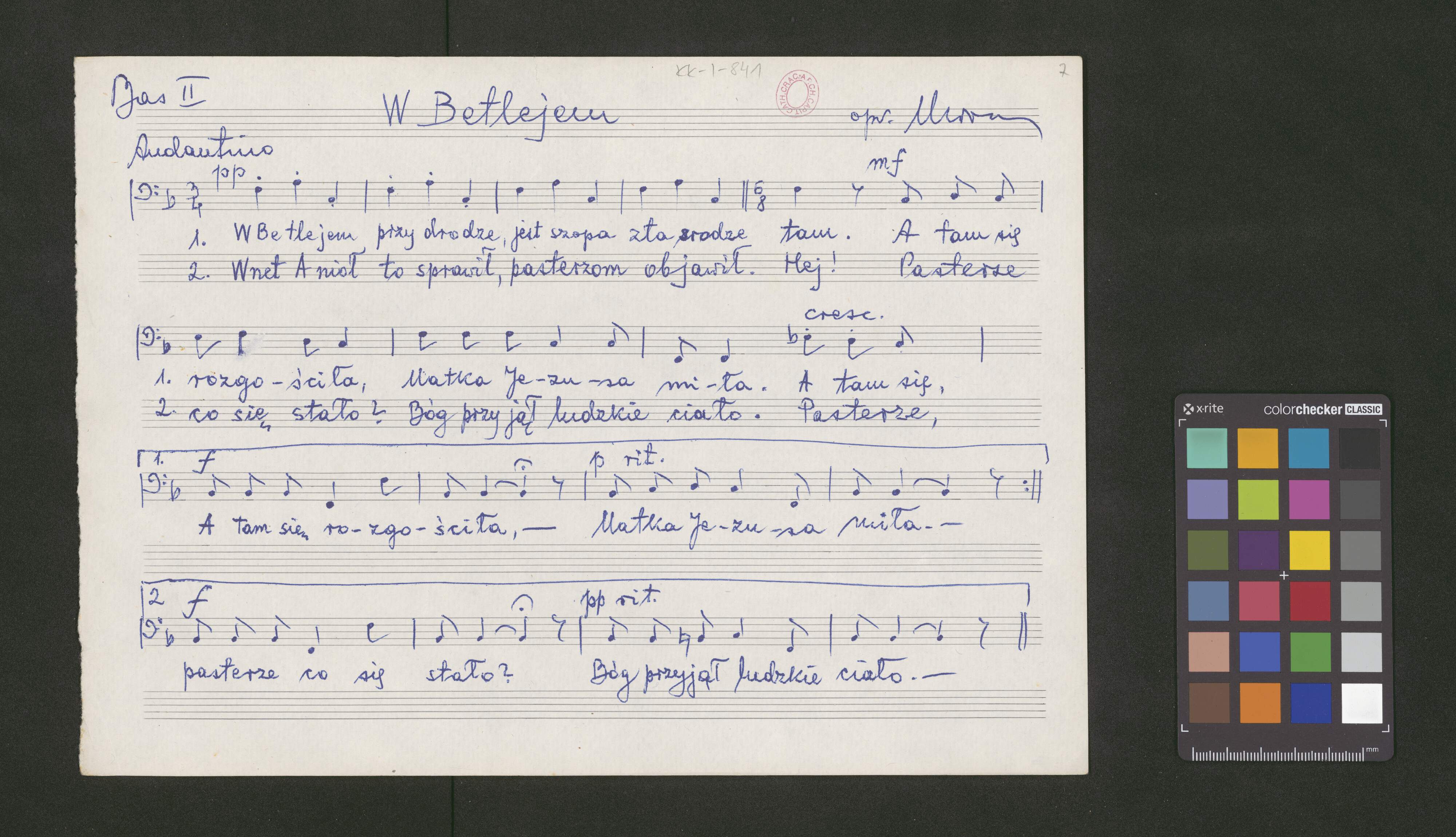 [caption title, T1:] [center:] W Betlejem... [right:] opr. Woźny