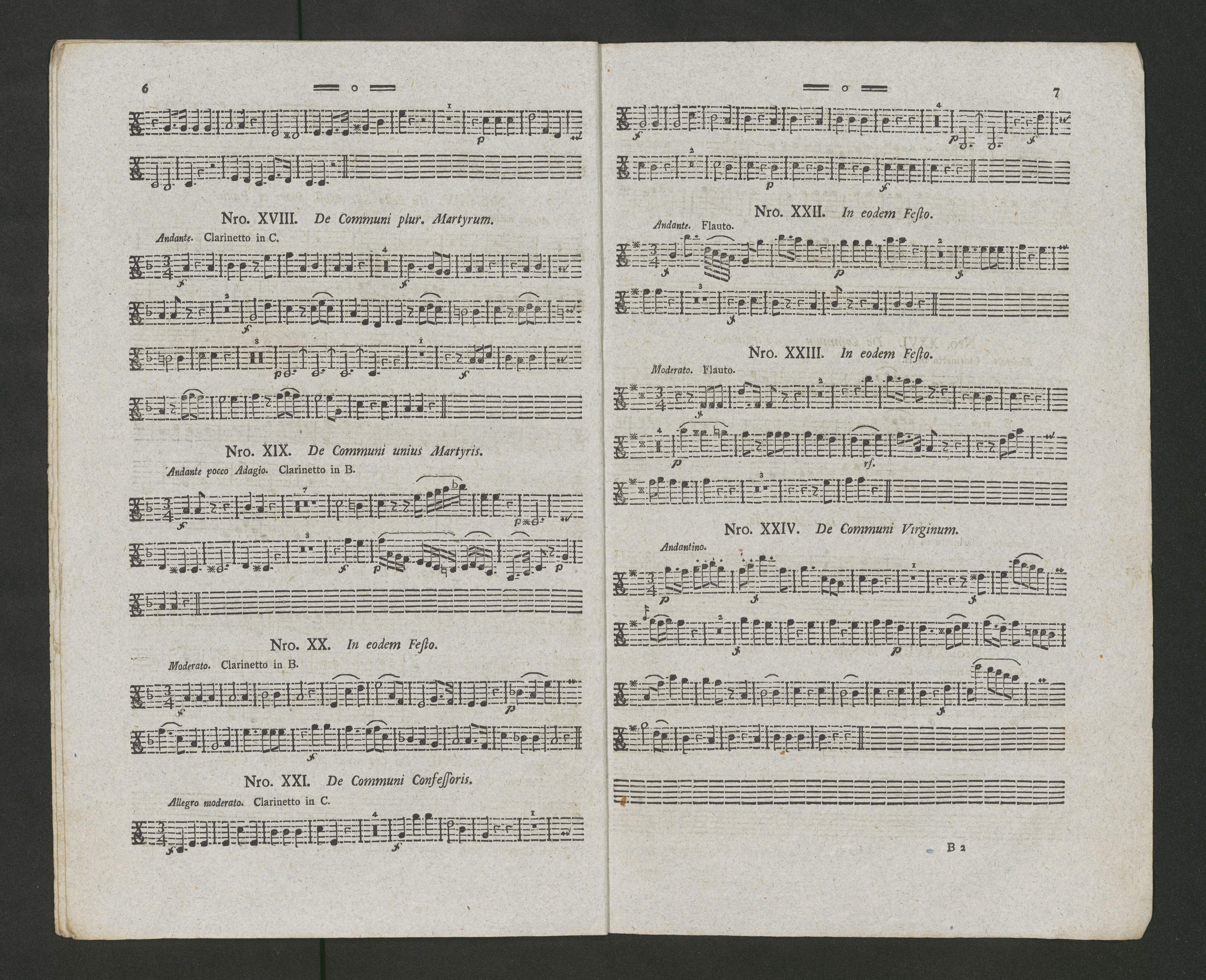 [org, title page:] JOSEPHI OHNEWALD | XXX. | HYMNI VESPERTINI, | DE OMNIBUS, CUM DOMINI TUM SANCTORUM, | FESTIS PER ANNUM OCCURRENTIBUS. | A | Canto, Alto, Tenore, Basso, | Violino Imo, Violino IIdo, Alto-Viola, | Organo et Violone obligatis. | 2. Flautis, (2. Clarinettis), 2. Cornibus, 2. Clarinis | et Tympanis ad libitum. | OPUS V. | [...]
