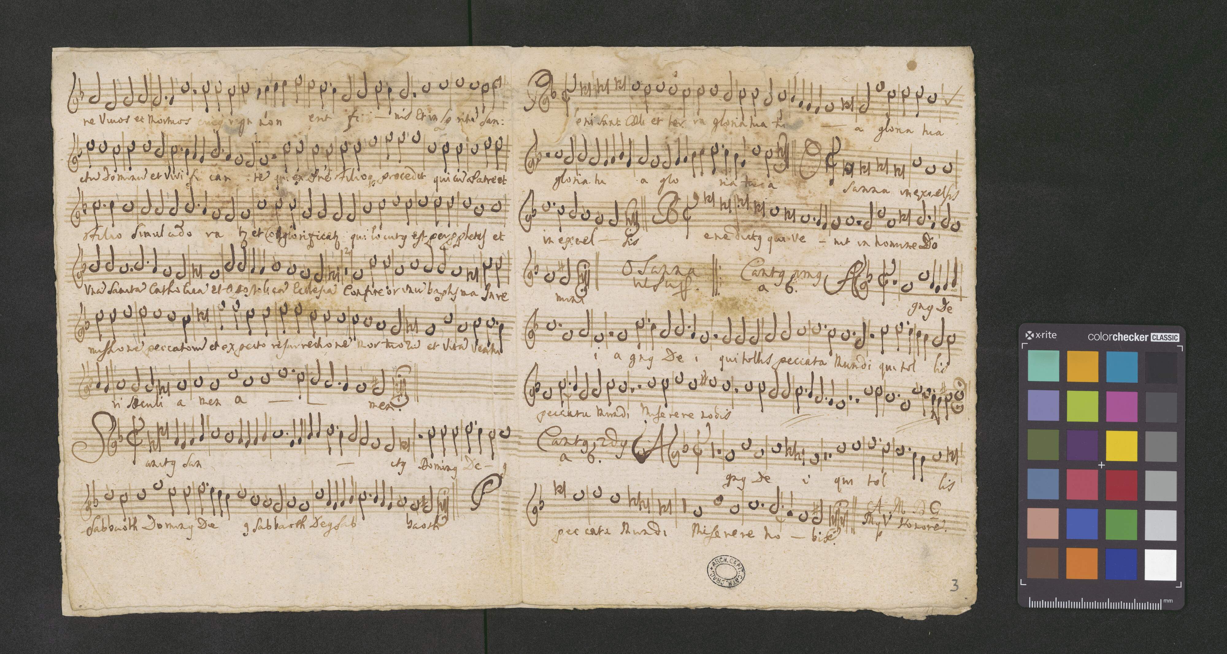 [title page:] Kyrie & Gloria. | à | Canto Alto. | Tenore Baſso. | Violini Due. | Flauto et Oboe Due | Violetta Neces: | Tromb: vel Clar: Due. | con. | Organo | Del Sigl Brixi | Ex lebus [sic!]. | Fel: Lang