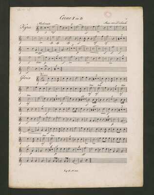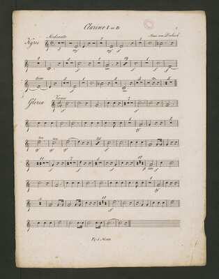 At the title page stamp of "Marco Berra" (bookseller) and stamp: "Eisenberger Archiv", at the right top corner old shelfmark: "62/1". At the verso of the title page printed list of C. L. Drobisch's works published by Falter & Sohn., [pl-text: Na karcie tytułowej w lewym górnym rogu ołówkiem spisane numery: "112" oraz "N. 293".], [pl-text: Pieczęć: „ARCHIWUM I BIBLIOTEKA”, „Krakowskiej Kapituły Katedralnej” wraz z wpisaną ołówkiem sygnaturą na odwrocie karty tytułowej. Pieczęć: „CATH. CRAC. * ARCH. CAPIT.” pojawia się na pierwszych stronach wszystkich głosów.], [pl-text: Na pierwszej stronie każdego głosu, w górnym brzegu karty sygnatura naniesiona ołówkiem.], [pl-text: Karta z głosem timp nieco naderwana z brzegu.]