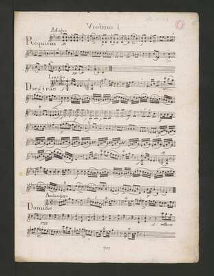 Vereinzelt handschriftliche Eintragungen unter anderem mit Tinte auf der Titelseite der cor 2-Stimme: "Le 20 avril 1842 arrangé p. L'orgue | par Xav. Zürcher.", Verblasster handschriftlicher Vermerk mit Bleistift: "I Sch 11", Rücken der cor 2-Stimme beschädigt., Handschriftliches Material siehe RISM Nr. 410007887., [pl-text: Pieczęć: „CATH. CRAC. * ARCH. CAPIT.” na pierwszej stornie każdej partii (poza Cor 2). Pieczęć: „ARCHIWUM I BIBLIOTEKA”, „Krakowskiej Kapituły Katedralnej” wraz z wpisaną ołówkiem sygnaturą na str. 2 (partia Cor 2).], [pl-text: Na karcie tytułowej w prawym górnym rogu ołówkiem naniesione numery: "138" oraz "1".], [pl-text: Na karcie tytułowej oraz na str. 1 partii B rozmazana (nieczytelna) czarna owalna pieczęć.], [pl-text: Na karcie tytułowej w prawym dolnym rogu obok nadrukowanego "Pr." czerwonym ołówkiem dopisany numer "15.".], [pl-text: Na pierwszej stronie każdej partii (poza Cor 2) spisana ołówkiem sygnatura.], [pl-text: Na pierwszej stronie partii S obok sygnatury zdrapany numer "578" (wcześniej spisany niebieskim długopisem).], [pl-text: Grzbiet kart bardzo zniszczony, widać liczne ubytki, zwłaszcza w służącej za okładkę partii Cor 2.]