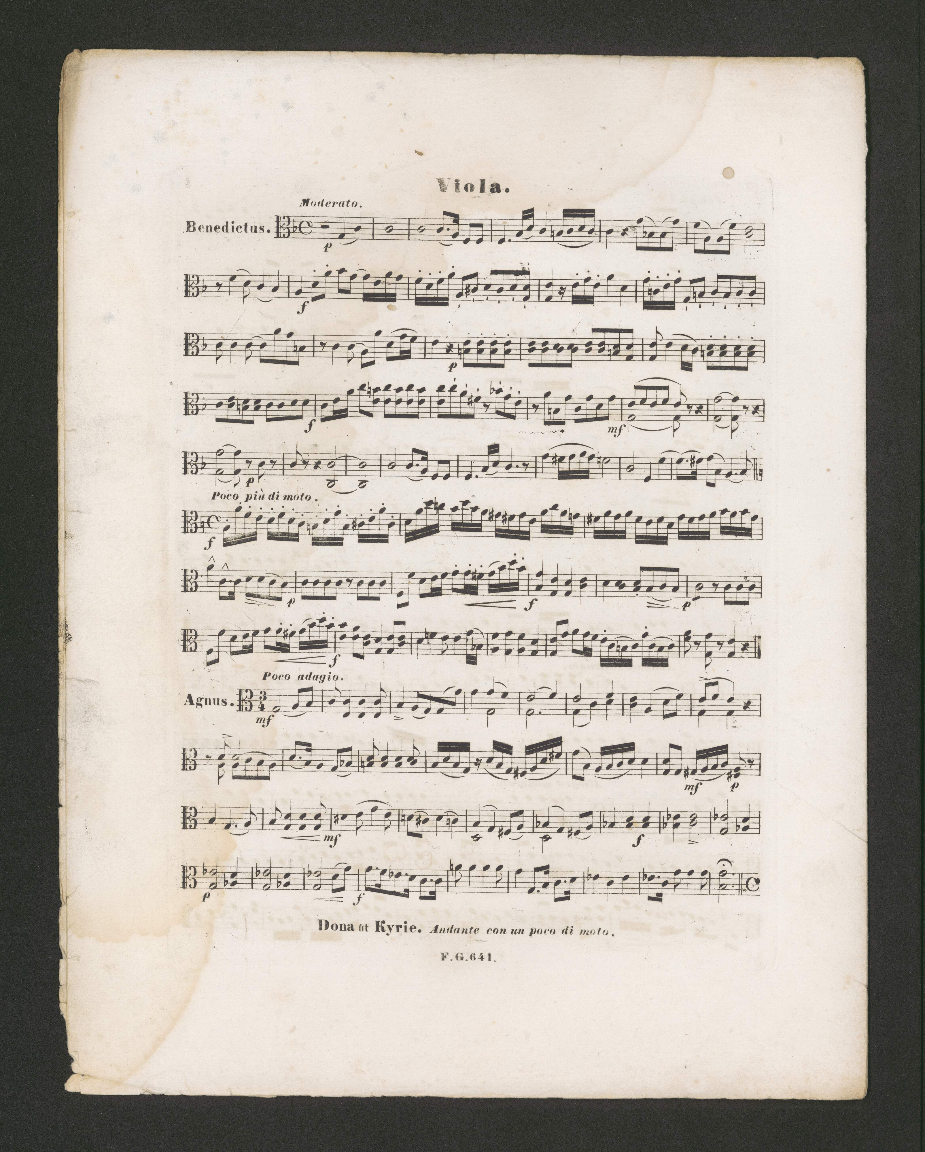 [cover title:] MESSE │ (de Sancto Wilhelmo.) │ für │ 4 Singstimmen, 2 Violinen, Viola, 2 Oboen, 2 Hörner, │ 2 Trompeten u. Pauken, Violoncell, Contrabass und Orgel, │ componirt, und │ dem hochwürdigsten, hochwohlgebornen Herrn │ WILHELM │ Abten des Benedictiner Stiftes zu Melk, k.k. Rathe, Commandeur │ des Oester. Kaiser Leopold Ordens, │ Primas und Präses des Nied. Oest. Prälatenstandes, Nied. Oest. ständ. Verordneten, etc. etc. etc. │ ehrfurchtsvoll gewidmet │ von │ LUDWIG ROTTER
