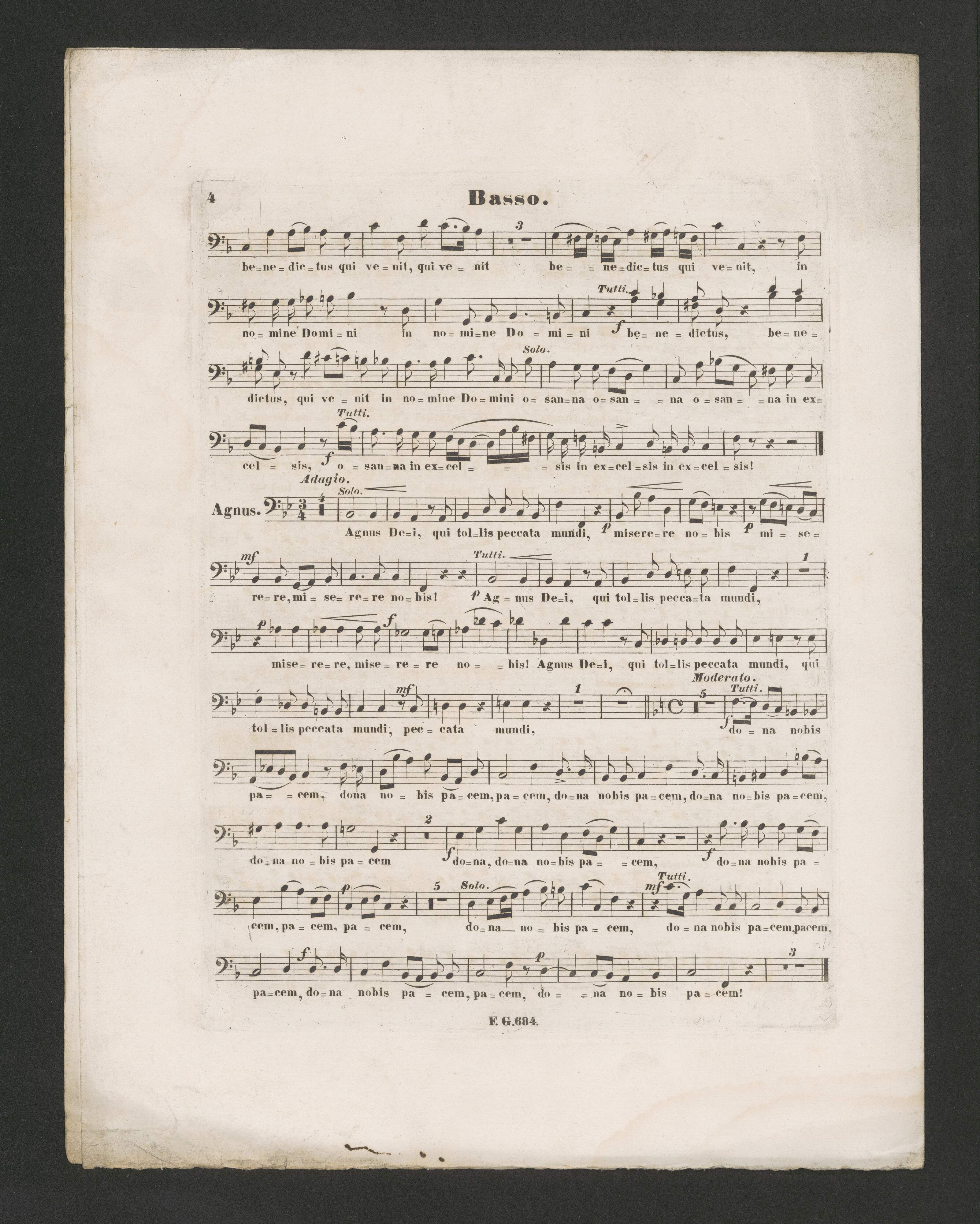 [org, p. 1:] MESSE │ (de sancto Friderico.) │ für │ 4 Solo u. Singstimmen, 2 Violinen, Viola, 2 Clarinetten, 2 Hörner, │ 2 fagotte, 2 Trompeten u. Pauken, Violoncell, Contrabass und Orgel, │ componirt, und │ dem hochwürdigsten, hochwohlgebornen Herrn │ FRIEDRICH │ Propsten und lateranensischen Abte des regul. Augustiner Chorherrenstiftes │ St. Florian. │ Sr kais. kön. apost. Majestät Rathe, Mitglied des löblichen Prälatenstandes in │ Oesterreich ob der Enns, Oberst Erbland- und Hof-Caplane │ etc. etc. etc. │ ehrfurchtsvoll gewidmet │ von │ LUDWIG ROTTER. │ Eigenthum der Verleger Eingetragen in das Vereins-Archiv │ Wien, bei F. Glöggl et Sohn, │ Kunst und Musikalienhandlung. │ LEIPZIG, F. WHISTLING. │ Lithografie. & Steindr. v. G. Wegelein. │ WIEN