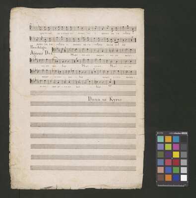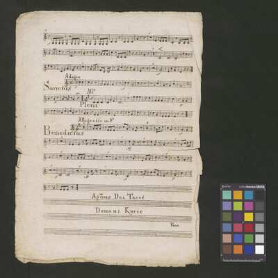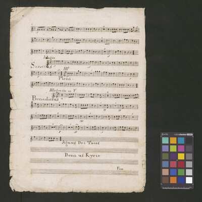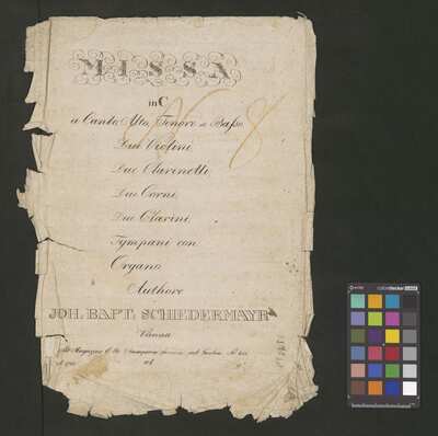 [pl-text: W druku brakuje partii org; z partii timp in C zachowana jedna strona (na odwrocie karty tytułowej).], [pl-text: Do druku dołączone partie vlne (2f.) oraz org (2f.) spisane ręcznie przez jednego kopistę. W partii org dopisane również cyfrowanie. Foliacja nw kartach naniesiona ołówkiem. Na f. 1r w obydwu partiach naniesiona ołówkiem sygnatura oraz pieczęć: „CATH. CRAC. * ARCH. CAPIT.”.], [pl-text: Druk włożony do okładki z mocniejszego papieru, na pierwszej stronie okładki napis atramentem: "Solennis Messe | in C. | Authore Richter", powyżej czerwonym ołówkiem naniesiono adnotację: "N 38". W prawym górnym rogu pieczęć: „CATH. CRAC. * ARCH. CAPIT.”.], [pl-text: Na karcie tytułowej naniesiono czerwonym ołówkiem adnotację: "N 8". Brzegi karty bardzo zniszczone.], [pl-text: Na kartach zawartych w źródle widnieją różne ślady zniszczeń oraz zużycia.], [pl-text: Pieczęć: „ARCHIWUM I BIBLIOTEKA”, „Krakowskiej Kapituły Katedralnej” wraz z wpisaną ołówkiem sygnaturą na odwrocie karty tytułowej (str. 2, pierwsza strona partii timp in C). Pieczęć: „CATH. CRAC. * ARCH. CAPIT.” na pierwszej stronie każdego kolejnego głosu (w partii B na str.3). Na pierwszej stronie partii B rozmazana czarna pieczęć.], [pl-text: Na pierwszych stronach partii naniesiona ołówkiem sygnatura.]