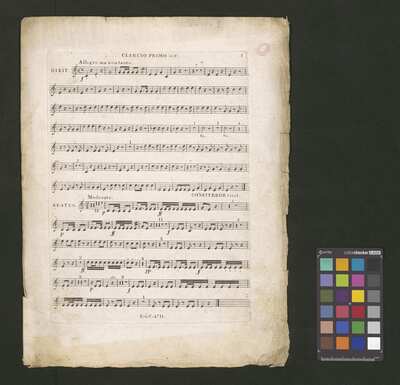 [pl-text: Do druku dołączone dodatkowe partie vl 1 i vl2 spisane ręcznie (każda partia po 3 folio.], [pl-text: Pieczęć: „ARCHIWUM I BIBLIOTEKA”, „Krakowskiej Kapituły Katedralnej” wraz z wpisaną ołówkiem sygnaturą na 1 str, głosu S. Pieczęć: „CATH. CRAC. * ARCH. CAPIT.” umieszczona we wszystkich partiach.], [pl-text: Na pierwszych stronach poszczególnych głosów (poza S) spisana ołówkiem sygnatura.], [pl-text: Na str. 1 głosu S w górnym brzegu karty numery: "213" (ołówkiem) oraz "439" (niebieskim długopisem). Na f. 1r dodatkowego głosu vl 2 numer "486" naniesiony niebieskim długopisem. Na 1 str. partii vl 2 numer "461" (niebieskim długopisem).], [pl-text: Druk posiada konkordancje ze źródłem o RISM ID 1001028475.]