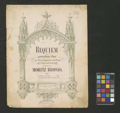 Brosig, Moritz | 1815-1887, [pl-text: Na okładce ołówkiem w górnym brzegu nieczytelny napis, obok aktualna sygnatura; w prawnym górnym rogu pieczęć: „CATH. CRAC. * ARCH. CAPIT.”, naniesiony niebieskim długopisem numer "569" oraz ołówkiem "131".], [pl-text: Na okładce niebieska owalna pieczęć: "S.A. KRZYŻANOWSKI * KSIĘGARNIA I SKŁAD NUT * W KRAKOWIE"], [pl-text: Pieczęć: „ARCHIWUM I BIBLIOTEKA”, „Krakowskiej Kapituły Katedralnej” wraz z wpisaną ołówkiem sygnaturą na odwrocie okładki. Pieczęć: „CATH. CRAC. * ARCH. CAPIT.” na pierwszej stronie każdej partii.], [pl-text: Sygnatura naniesiona ołówkiem na pierwszej stronie każdej partii.], [pl-text: Karty noszą różne ślady zużycia.]