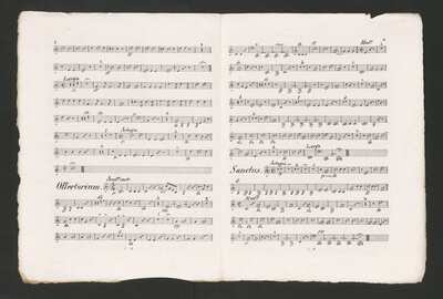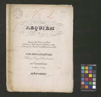 At the title page (parts tr 1, 2 = cover) old shelfmark "[No] 77/1", below bookseller's stamp: "Marco Berra". Later added 3 ms. parts fl, cl 1, 2 in B|b., [pl-text: Na okładce w górnym brzegu czerwonym ołówkiem naniesione "N|o| 2", niebieskim długopisem "515" oraz ołówkiem "130". Na okładce pieczęć: „ARCHIWUM I BIBLIOTEKA”, „Krakowskiej Kapituły Katedralnej” wraz z wpisana ołówkiem aktualną sygnaturą. W dolnym brzegu dopisane czerwonym ołówkiem "20" oraz pod miejscem wydania: czerwonym ołówkiem "6/40 (nieczyt.)", obok ołówkiem: "157 50x C.M".], [pl-text: Na pierwszej stronie każdego głosu (w niektórych głosach także na stronie 3) umieszczona pieczęć: „CATH. CRAC. * ARCH. CAPIT.” oraz naniesiona ołówkiem sygnatura.], [pl-text: W partii S na pierwszej stornie dodatkowo skreślony ołówkiem numer (sporządzony niebieskim długopisem) "588".]