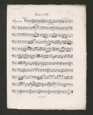 At the title page (timp, cover) bookseller's stamp:" Marco Berra", further stamp "Eisenberger Archiv" and old shelfmark "N 81/1". Added ms. part S (1853), further parts by same hand fl, cl 1, 2 in B|b., Material: 53 f., [pl-text: Na karcie tytułowej w górnym brzegu naniesione czerwonym ołówkiem: "N 9"; ołówkiem: w lewym rogu "N. 306", na środku "Tympani", w prawym rogu: "129". W dolnym brzegu czerwonym ołówkiem: "20", pod miejscem wydania: "6/40 Me". Na karcie tytułowej umieszczona także pieczęć: „ARCHIWUM I BIBLIOTEKA”, „Krakowskiej Kapituły Katedralnej” wraz z wpisaną ołówkiem aktualną sygnaturą.], [pl-text: Na pierwszej stronie każdej partii naniesiona ołówkiem sygnatura oraz umieszczona pieczęć: „CATH. CRAC. * ARCH. CAPIT.” (w partii tr 2 na str. 2). Pieczęć naniesiona także na każdej stronie 3.], [pl-text: Na pierwszej stronie partii S częściowo zdrapany napis "589" naniesiony niebieskim długopisem.]