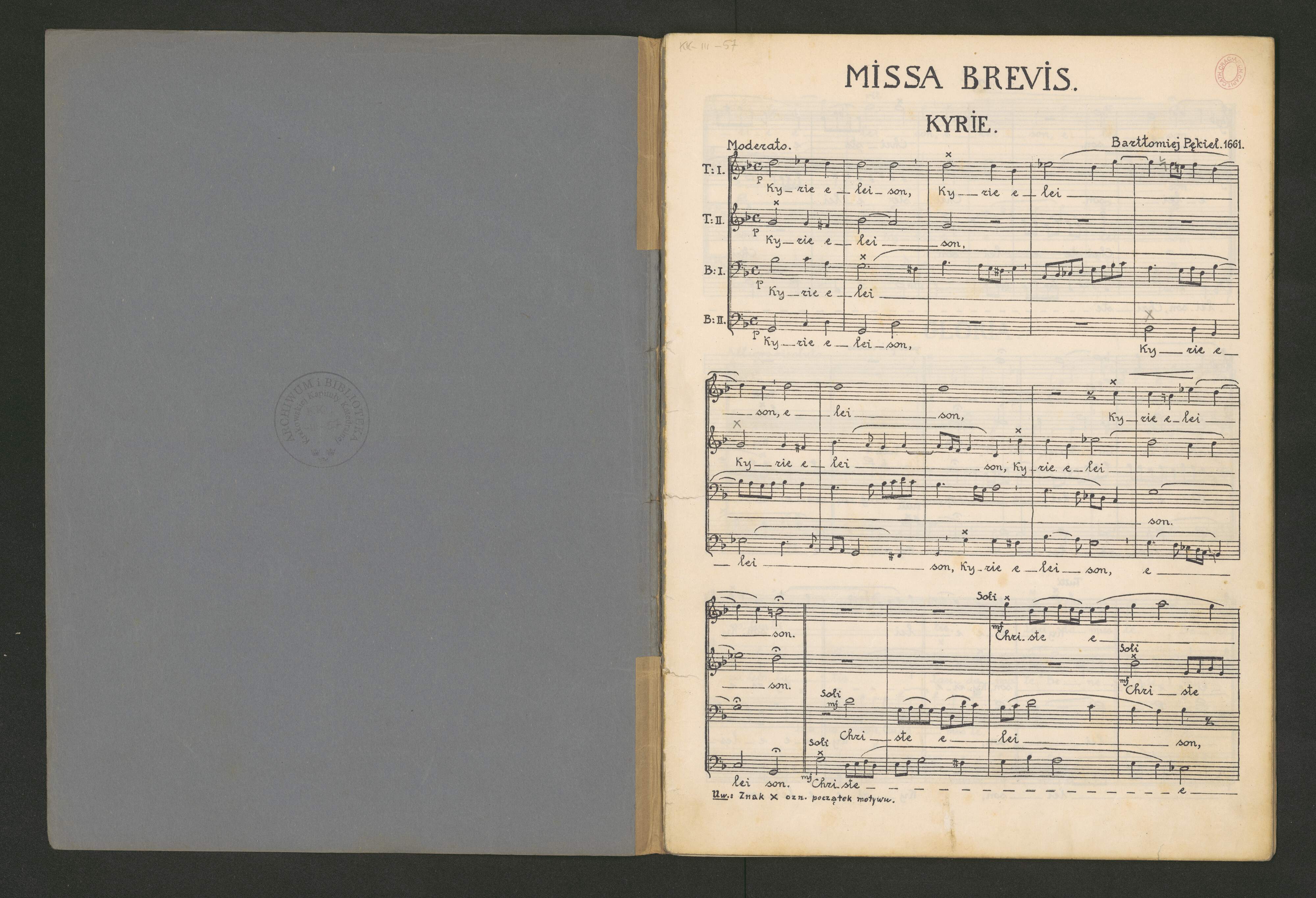 Bartłomiej Pękiel | MISSA BREVIS | NA 4 GŁOSY MĘSKIE | ( w oryginale na alt, 2 tenory i bas) | Z rękopisów roranckich w Krakowie wydał | X. WANDELIN ŚWIERCZEK, C. M. | "CREDO" opracował X. Dr. HIERONIM FEICHT, C. M. | Nakładem Związku Chórów Kościelnych A Kr. | Kraków 1931