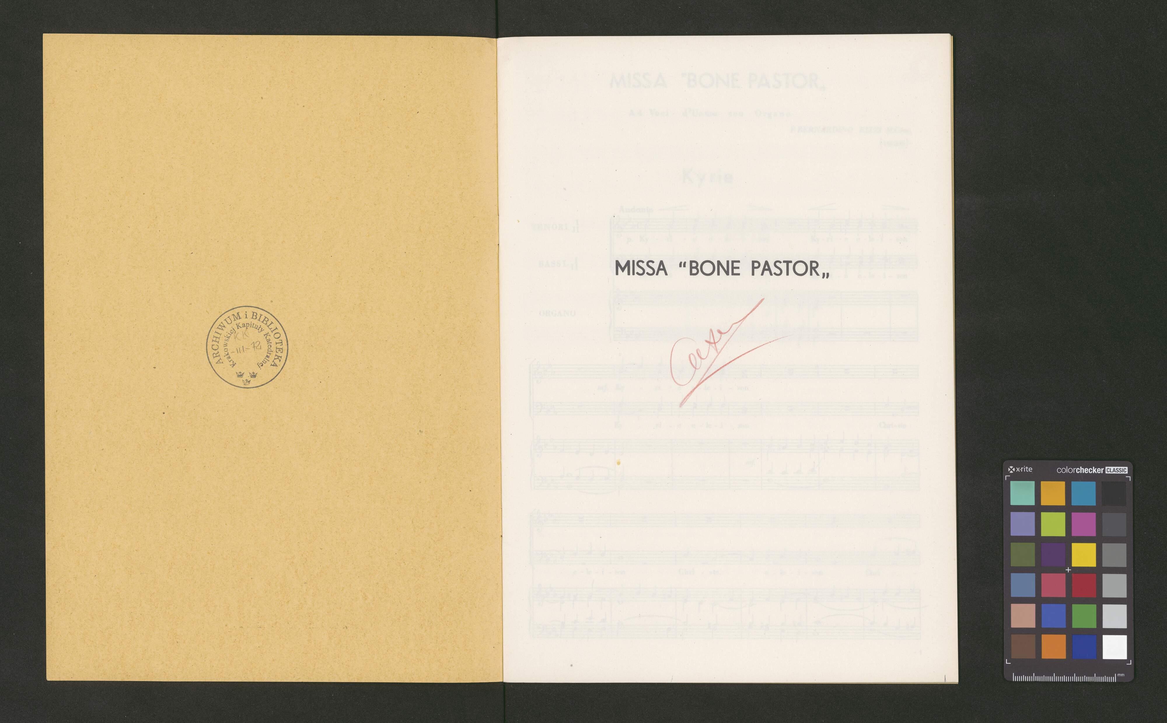 [cover title:] P. BERNARDINO RIZZI | Fr. Minore Conventuale | MESSA "BONE PASTOR" | A 4 VOCI D'UOMO CON ORGANO | PRESO D'AUTORE | BASILICA DEI FRARI - VENEZIA 1956