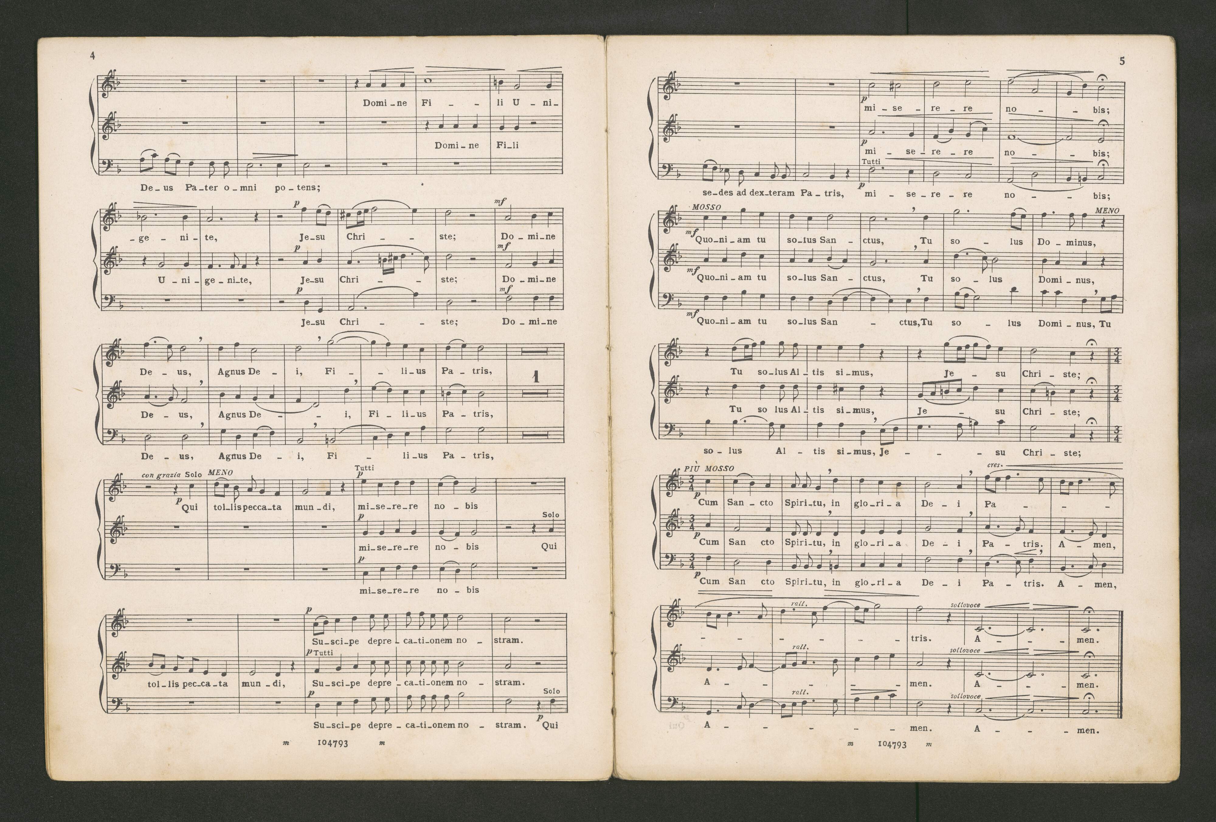 [cover title:] MARCO NEVASTRO | MISSA | PRO VITAE LONGEVITATE LEONIS XIII | TRIBUS VOCIBUS AEQUALIBUS | CONCINENDA | ORGANO COMITANTE | 104675 (A) netti Fr. 2 - | 104793 PARTI CANTANTI STACCATE (A) NETTI Cent 75 | EDIZIONI RICORDI
