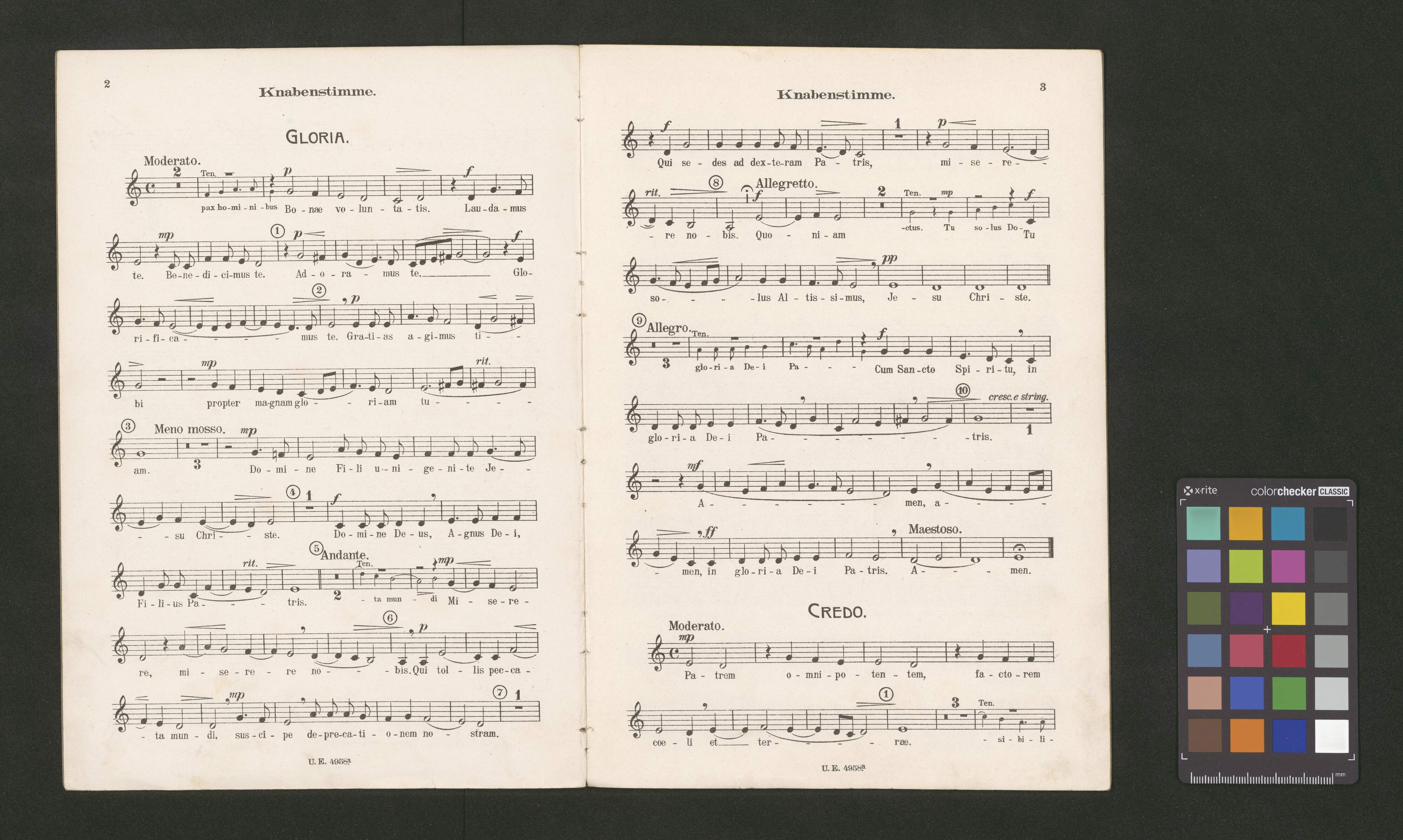 [page title:] MEISTERWERKE | KIRCHLICHER TONKUNST | IN ÖSTERREICH | FÜR DEN PRAKTISCHEN LITURGISCHEN CHORGEBRAUCH EINGERICHTET | UND HERAUSGEGEBEN VON DER "SCHOLA AUSTRIACA" UNTER LEITUNG | VON PROF. V. GOLLER, KLOSTERNEUBURG | ANTONIO | LOTTI | STUDENTEN-MESSE | FÜR KNABENSTIMME, TENOR, BASS, ORGEL UND | 2 VIOLINEN | FÜR DEN PRAKTISCHEN LITURGISCHEN CHORGEBRAUCH | EINGERICHTET VON | ALFONS SCHLÖGL | [...]