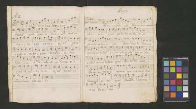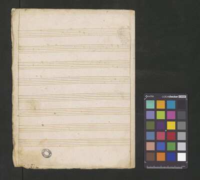 3 sacred songs, [pl text: Pieczęć: „CATH. CRAC. * ARCH. CAPIT.” na środku górnej części folio 1r oraz na folio 2v w lewym dolnym rogu.], [pl text: W lewym górnym rogu folio 1r jest sygnatura zapisana ołówkiem: Kk.I.132], [pl text: numeracja stron wykonana ołówkiem, w górnym prawym narożniku folio 1r i 2r ], [pl text: ostatny folio (2v) nie ma zapisu nutowego]
