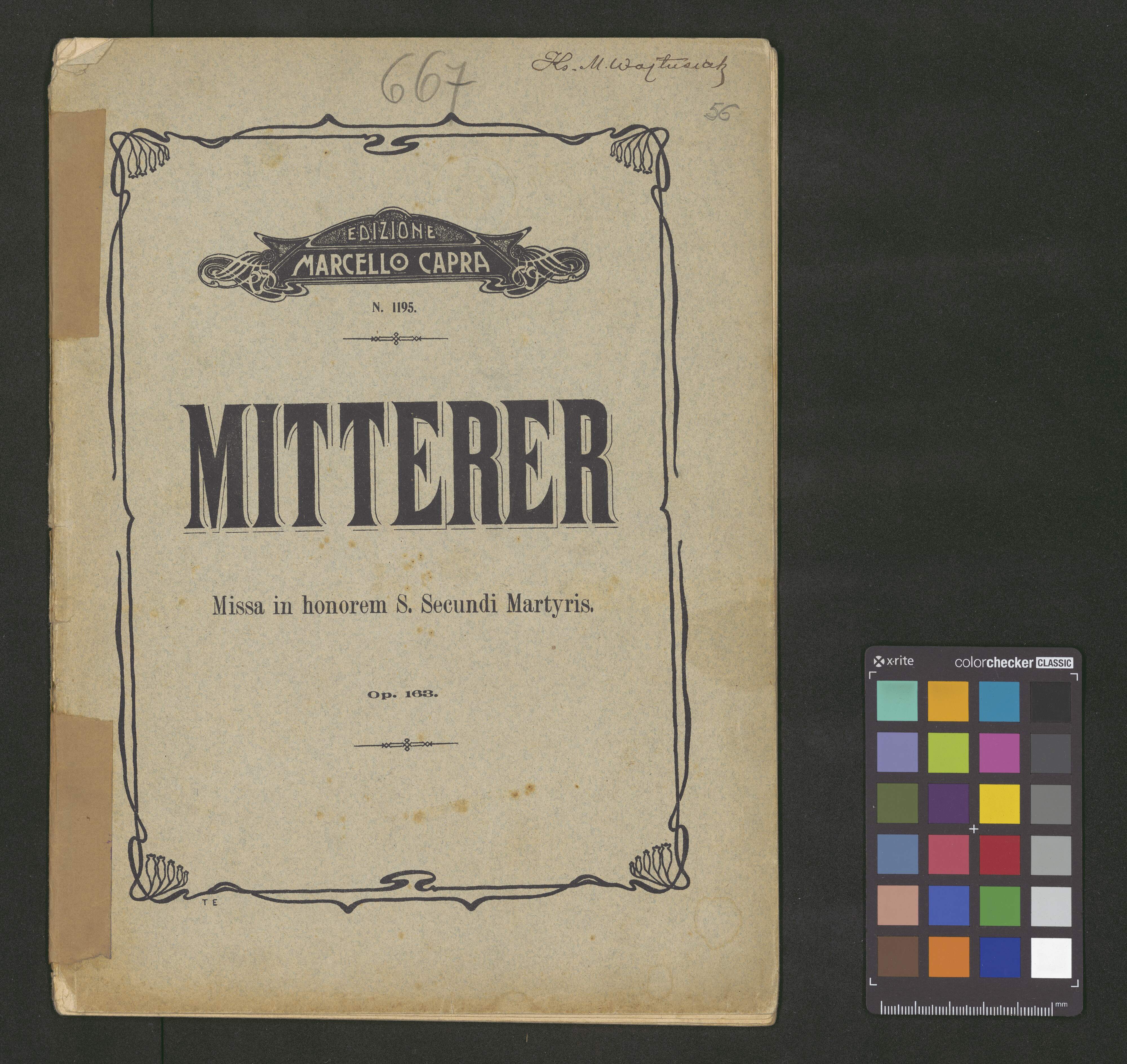 [cover title:] EDIZIONE | MARCELLO CAPRA | N. 1195. | MITTERER | Missa in honorem S. Secundi Martyris. | Op. 163