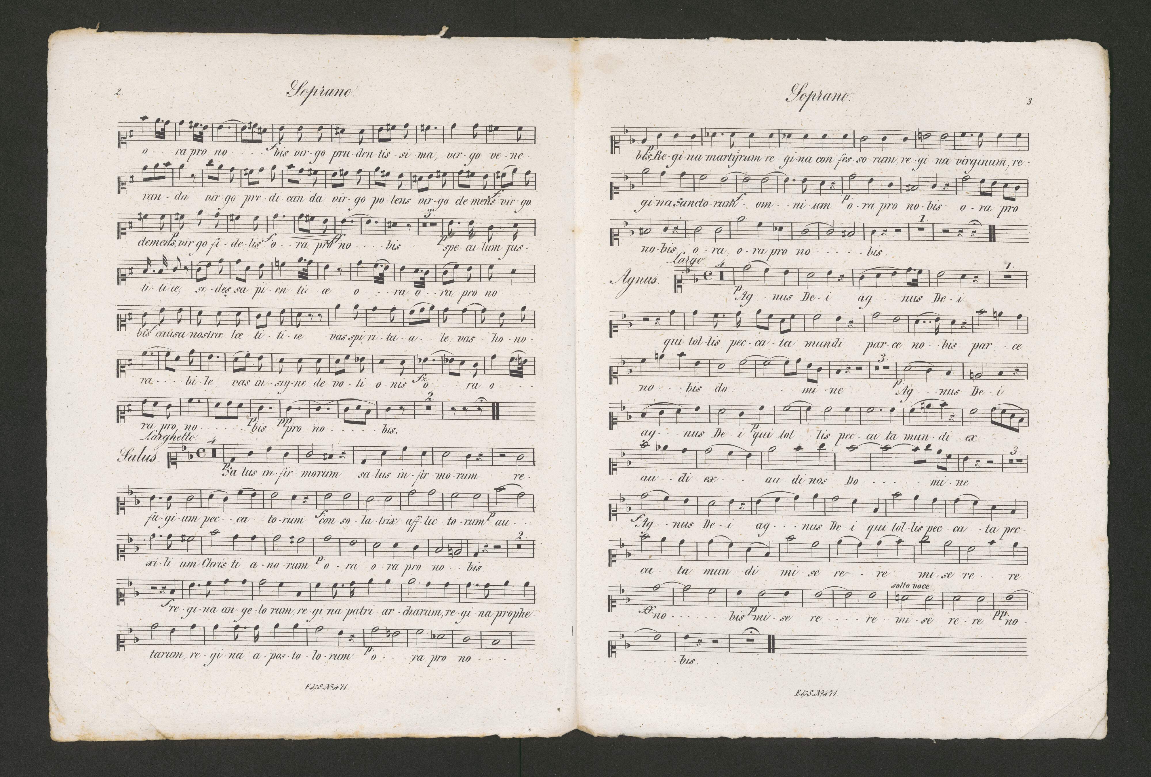 LYTANEY | in B | für | Vier Singstimmen, 2 Violinen, Viola, Orgel und | 2 Hörnen obligat, Trompeten & Pauken | ad libitum | von | JOH. CAS. AIBLINGER | K: b. Kapellmeister. | [right:] Pr. ft2, 30 kr | [center:] EIGENTHUM DER VERLIEGER | Eingetragen in dem Vereins-Archive | Munchen in der K. b. Hof-Musikalien und Musik-Instrumenten-Handlung | von Falter & Sohn | N|o 471