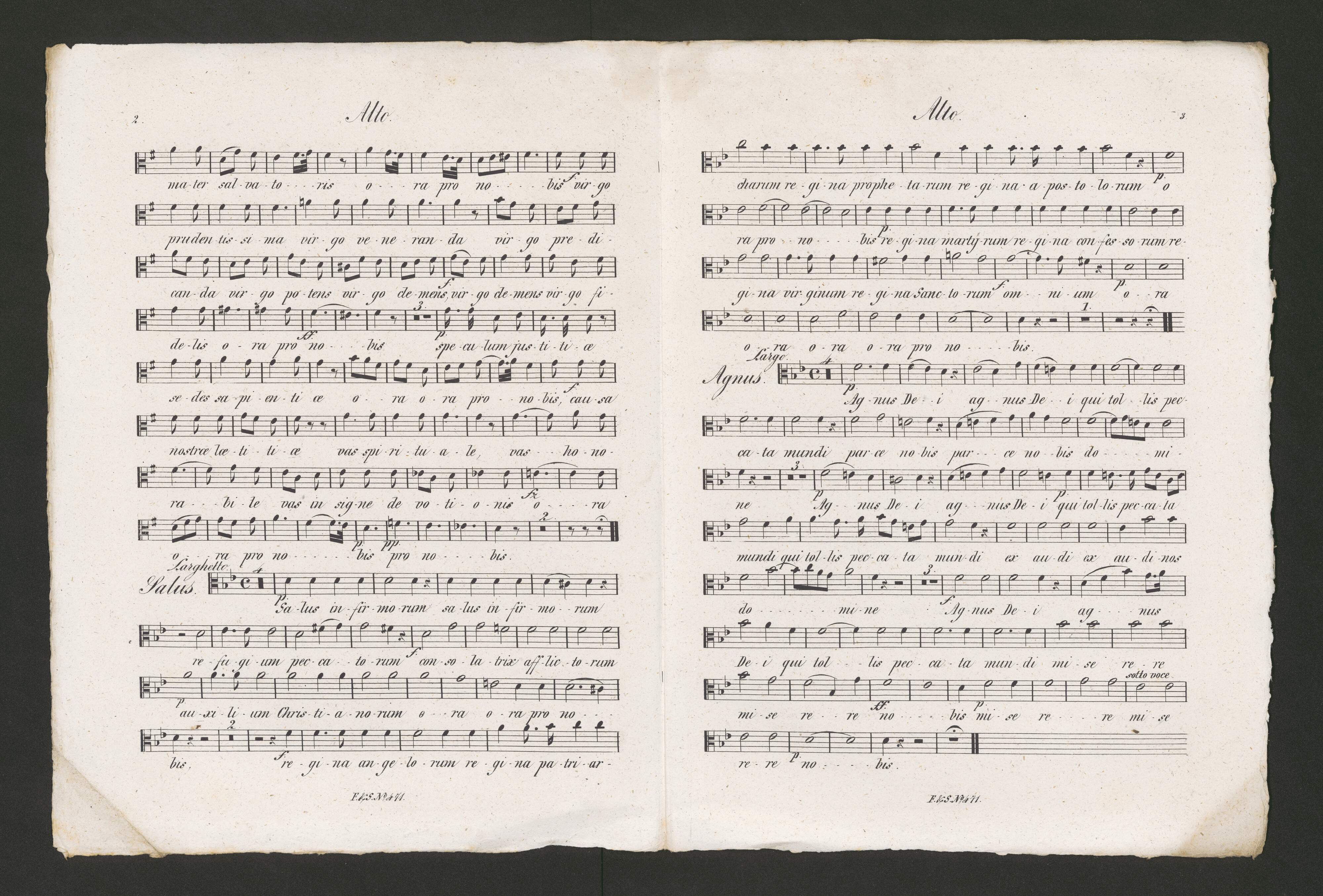 LYTANEY | in B | für | Vier Singstimmen, 2 Violinen, Viola, Orgel und | 2 Hörnen obligat, Trompeten & Pauken | ad libitum | von | JOH. CAS. AIBLINGER | K: b. Kapellmeister. | [right:] Pr. ft2, 30 kr | [center:] EIGENTHUM DER VERLIEGER | Eingetragen in dem Vereins-Archive | Munchen in der K. b. Hof-Musikalien und Musik-Instrumenten-Handlung | von Falter & Sohn | N|o 471
