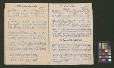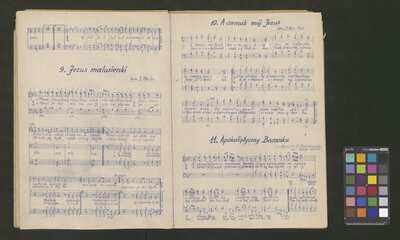 [pl-text: Odbotki hektograficzne.], [pl-text: Odbitki hektograficzne.], [pl-text: Na II s. okł. pieczęć okrągła z herbem Trzy korony, w otoku treść: "ARCHIWUM i BIBLIOTEKA | Krakowskiej Kapituły Katedralnej".], [pl-text: Na s. 3 owalna pieczęć: „CATH. CRAC. * ARCH. CAPIT.”], [pl-text: Na okładce, ołówkiem: "dyrygent".], [pl-text: Na II s. okł. pieczęć okrągła z herbem Trzy korony, w otoku treść: "ARCHIWUM i BIBLIOTEKA | Krakowskiej Kapituły Katedralnej".], [pl-text: pomiędzy s. 2-3 włożone puste podwójne folio innego papieru.], [pl-text: Skreślenia i poprawki ołówkiem.], [pl-text: Na s. 3 owalna pieczęć: „CATH. CRAC. * ARCH. CAPIT.”], [pl-text: Brak części karty ze stronami 7-8.], [pl-text: Na II s. okł. pieczęć okrągła z herbem Trzy korony, w otoku treść: "ARCHIWUM i BIBLIOTEKA | Krakowskiej Kapituły Katedralnej".], [pl-text: Na s. 3 owalna pieczęć: „CATH. CRAC. * ARCH. CAPIT.”], [pl-text: Do druku dołączone rękopiśmienne partesy jednego z utworów z kolekcji ("Trzej królowie jadą").], [pl-text: Na II s. okł. pieczęć okrągła z herbem Trzy korony, w otoku treść: "ARCHIWUM i BIBLIOTEKA | Krakowskiej Kapituły Katedralnej".], [pl-text: Na s. owalna pieczęć: „CATH. CRAC. * ARCH. CAPIT.”], [pl-text: Na II s. okł. pieczęć okrągła z herbem Trzy korony, w otoku treść: "ARCHIWUM i BIBLIOTEKA | Krakowskiej Kapituły Katedralnej".], [pl-text: Na s. 5 owalna pieczęć: „CATH. CRAC. * ARCH. CAPIT.”]