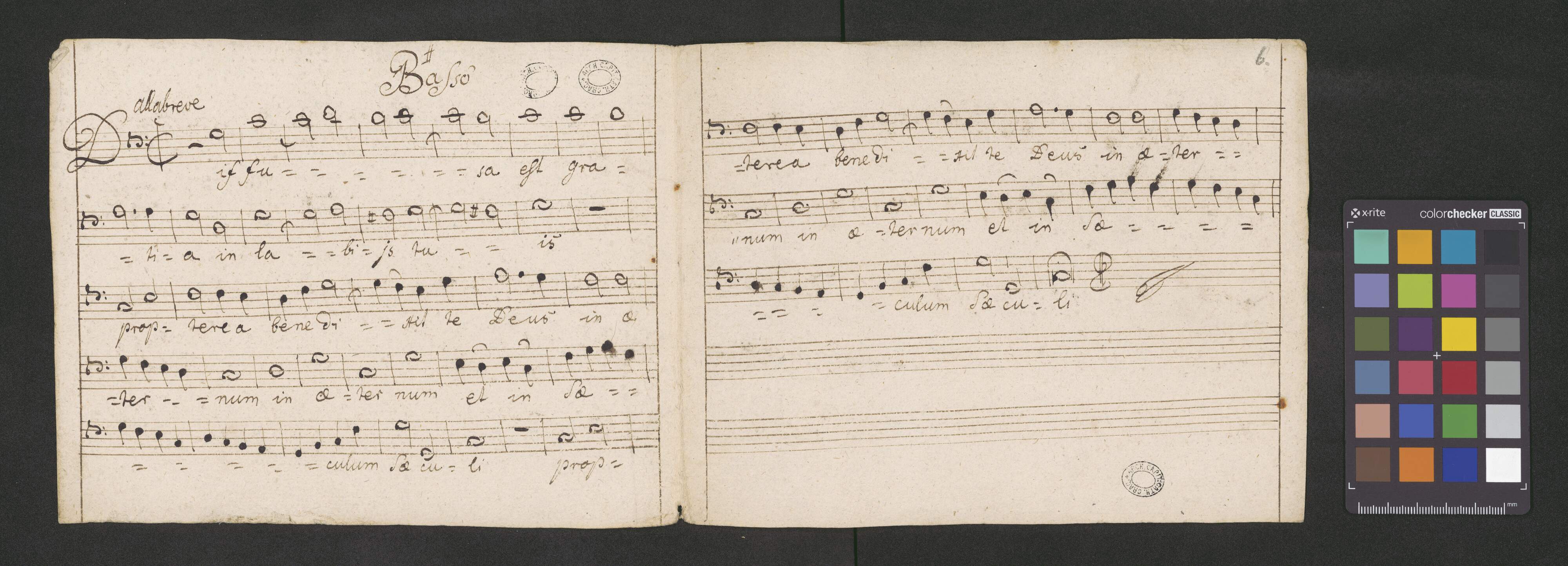 [on the tutle page:] Offertorium De Beata | a 4 voce | Canto Alto Tenore Basso | et | Basso ripieno