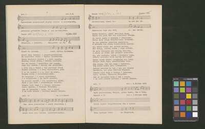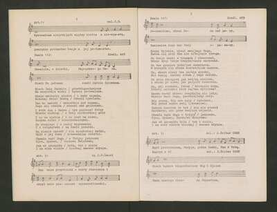 2 vespers, [pl-text: Nieszpory uwzględniają teksty i melodie ze śpiewnika Siedleckiego i utwory innych kompozytorów.], [pl-text: Druk nieprofesjonalny, odbitka.], [pl-text: 18 identycznych odbitek.], [pl-text: Każda odbitka składa się z 12 numerowanych stron oraz przedniej i tylnej okładki, być może późniejszej.], [pl-text: Na 1. stronie okładki i na 11 stronie numerowanej pieczęć o treści "ZARZĄD BAZYLIKI METROPOLITARNEJ | w Krakowie, Wawel 3.], [pl-text: Na drugiej stronie okładki pierwszej odbitki pieczęć okrągła o treści "ARCHIWUM I BIBLIOTEKA | Krakowskiej Kapituły Katedralnej | [ołówkiem] KK-III | -329/1". Na drugiej stronie okładki każdej kolejnej odbitki analogiczna pieczęć z kolejnymi numerami porządkowymi na końcu sygnatury.], [pl-text: na pierwszej stronie okładki stara sygnatura niebieskim atramentem: "Nr. 35".]