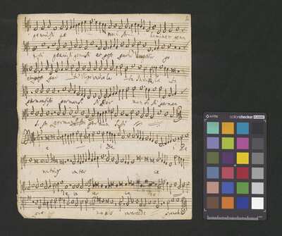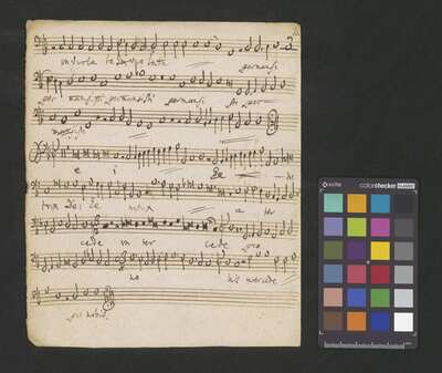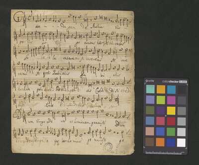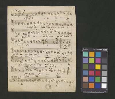 [pl-text: Pieczęć: „CATH. CRAC. * ARCH. CAPIT.” na każdej karcie.], [pl-text: Foliacja w źródle naniesiona ołówkiem. Dodatkowo na każdej stronie verso dopisany numer "2".], [pl-text: Sygnatura naniesiona ołówkiem w prawym dolnym rogu f. 1r. W lewym górnym brzegu strony ślad po napisie "Ch. 47".], [pl-text: Konkordancja z RISM ID 220032136.]