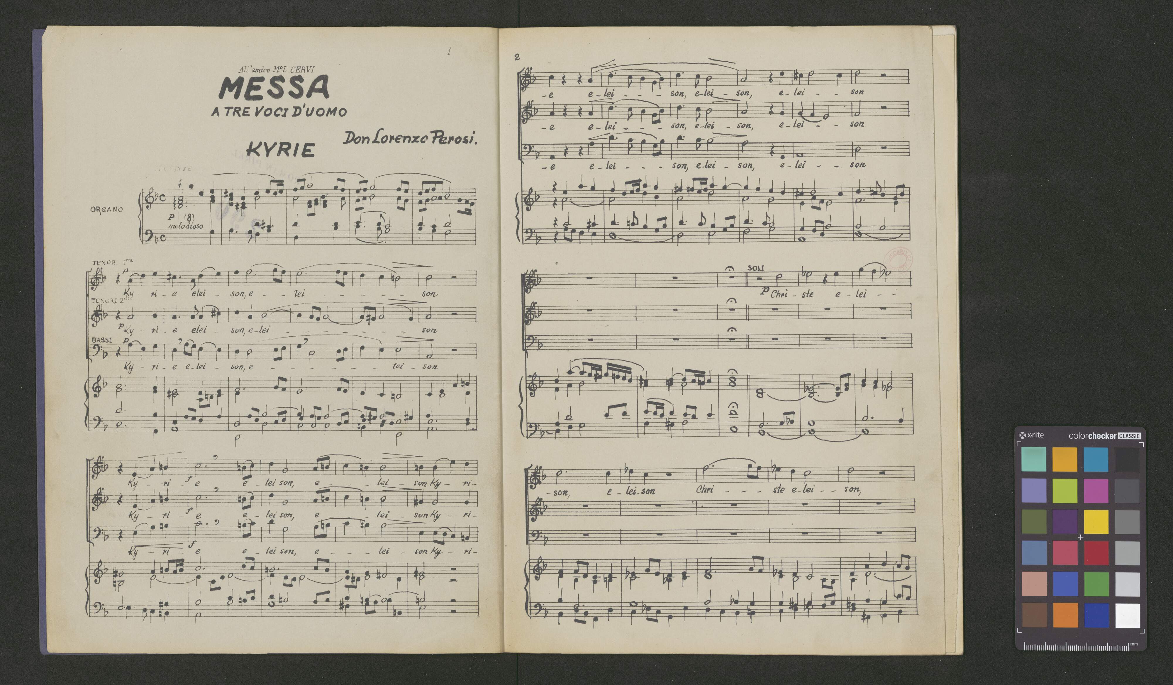 [caption title:] All' amico M|o L. CERVI | MESSA | A TRE VOCI D'UOMO