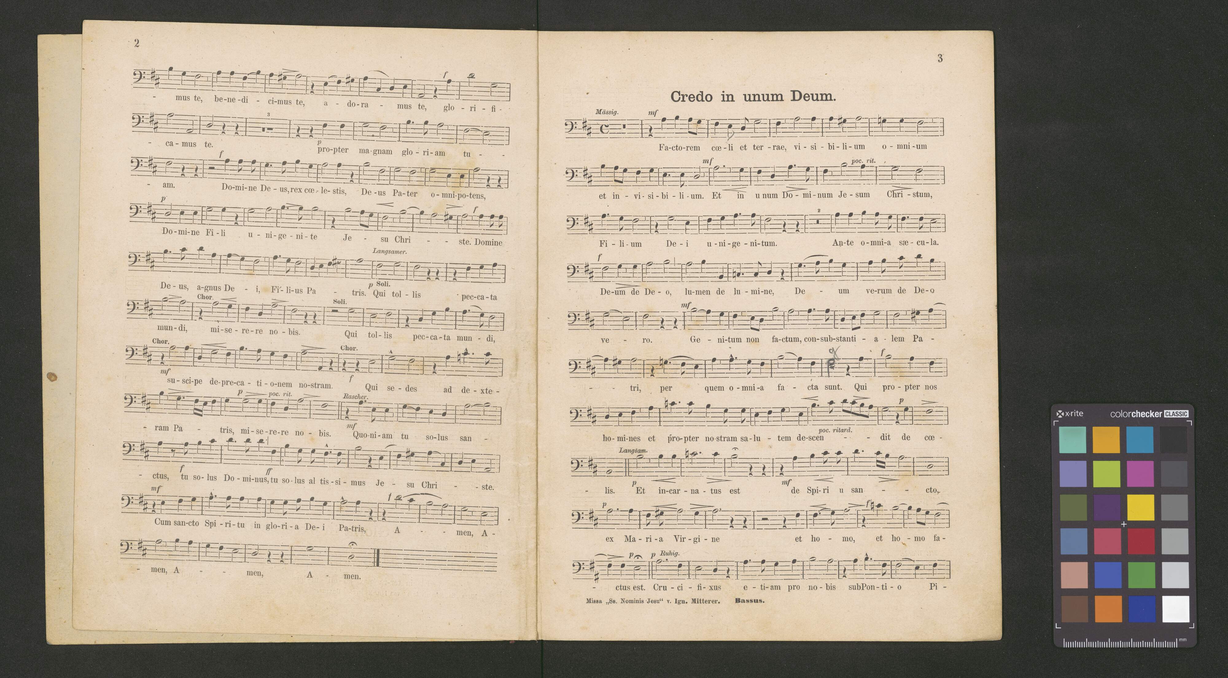[caption title, score:] MISSA | in laudem et adorationem | Ss. Nominis Jesu. | Ad chorum vocum virilium concinente Organo | comp. | Ignatius Mitterer