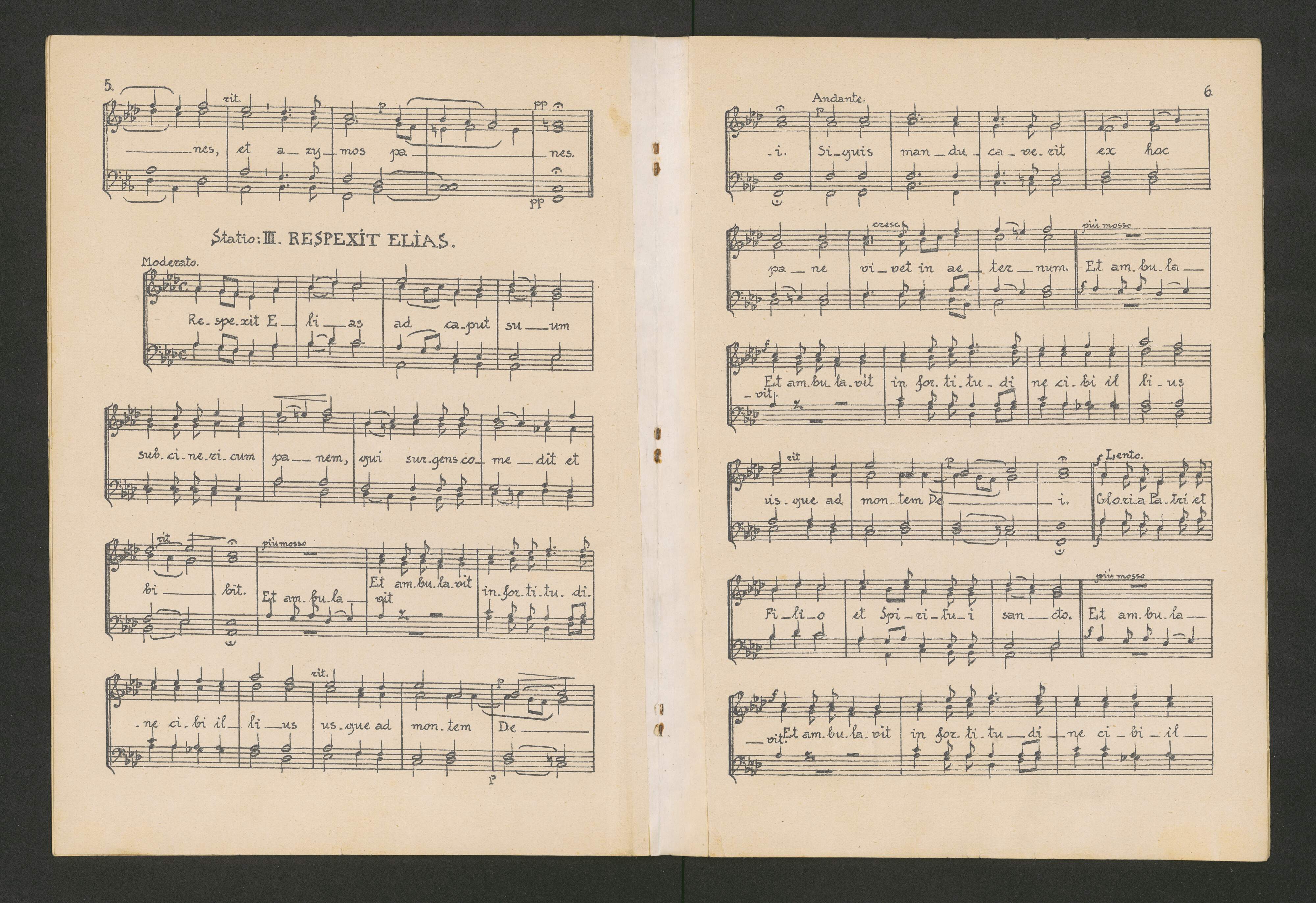 [caption title on page 1:] Statio: I., HOMO QUIDAM.” [caption title on page 3:] Statio: II. „IMMOLABIT HOEDUM”. [caption title on page 5:] Statio: III. RESPEXIT ELIAS. [caption title on page 7:] Statio: IV. „MISIT ME VIVENS PATER. [caption title on page 9:] O SACRUM CONVIVIUM
