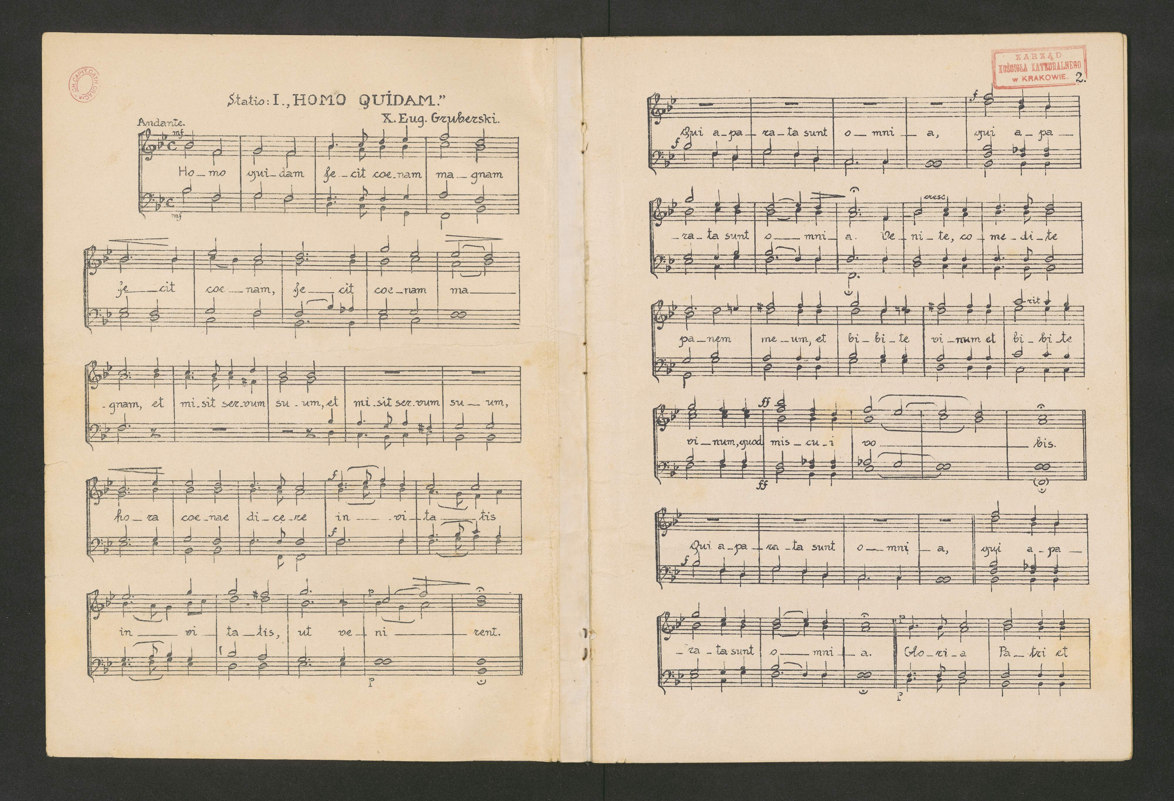 [caption title on page 1:] Statio: I., HOMO QUIDAM.” [caption title on page 3:] Statio: II. „IMMOLABIT HOEDUM”. [caption title on page 5:] Statio: III. RESPEXIT ELIAS. [caption title on page 7:] Statio: IV. „MISIT ME VIVENS PATER. [caption title on page 9:] O SACRUM CONVIVIUM
