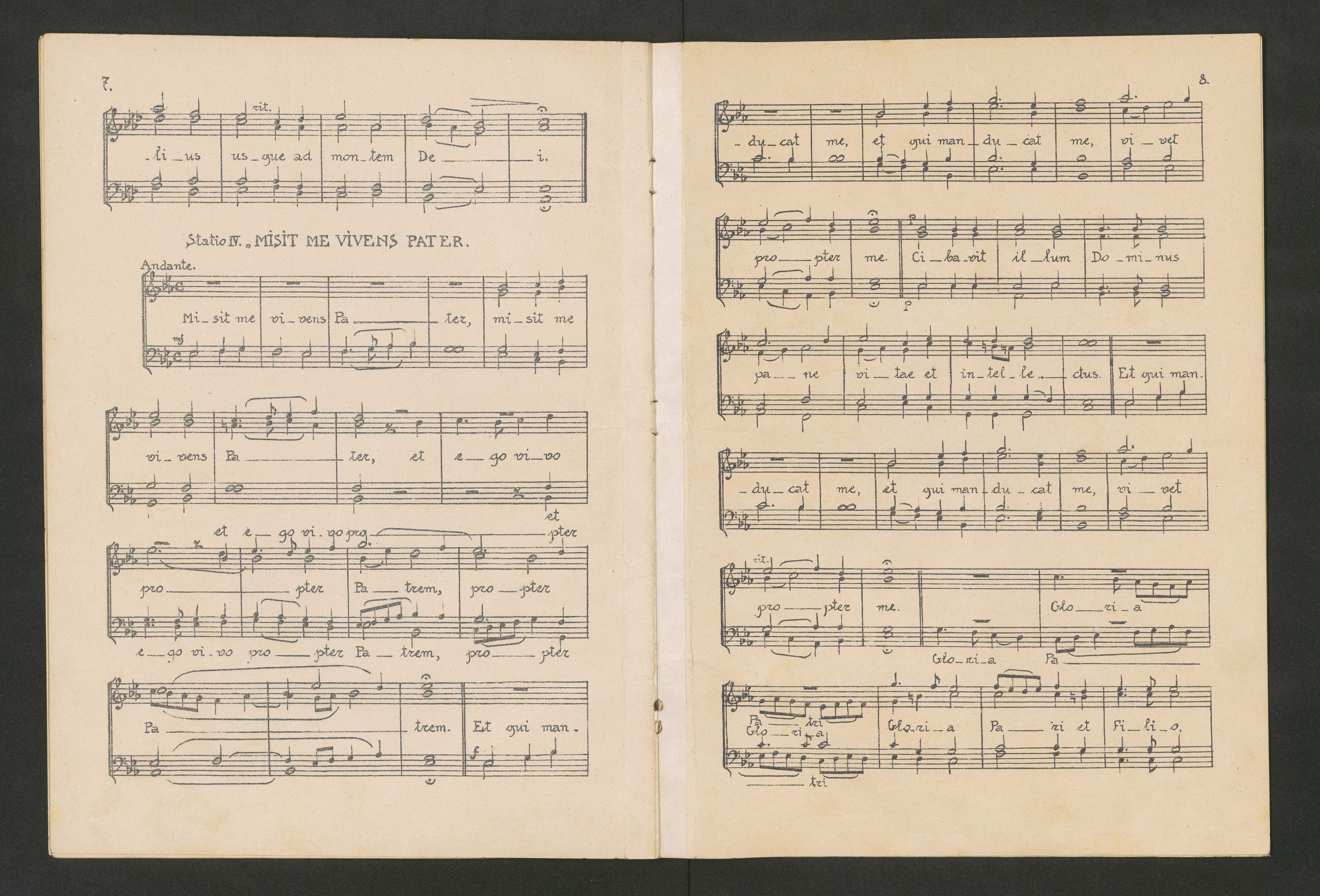 [caption title on page 1:] Statio: I., HOMO QUIDAM.” [caption title on page 3:] Statio: II. „IMMOLABIT HOEDUM”. [caption title on page 5:] Statio: III. RESPEXIT ELIAS. [caption title on page 7:] Statio: IV. „MISIT ME VIVENS PATER. [caption title on page 9:] O SACRUM CONVIVIUM