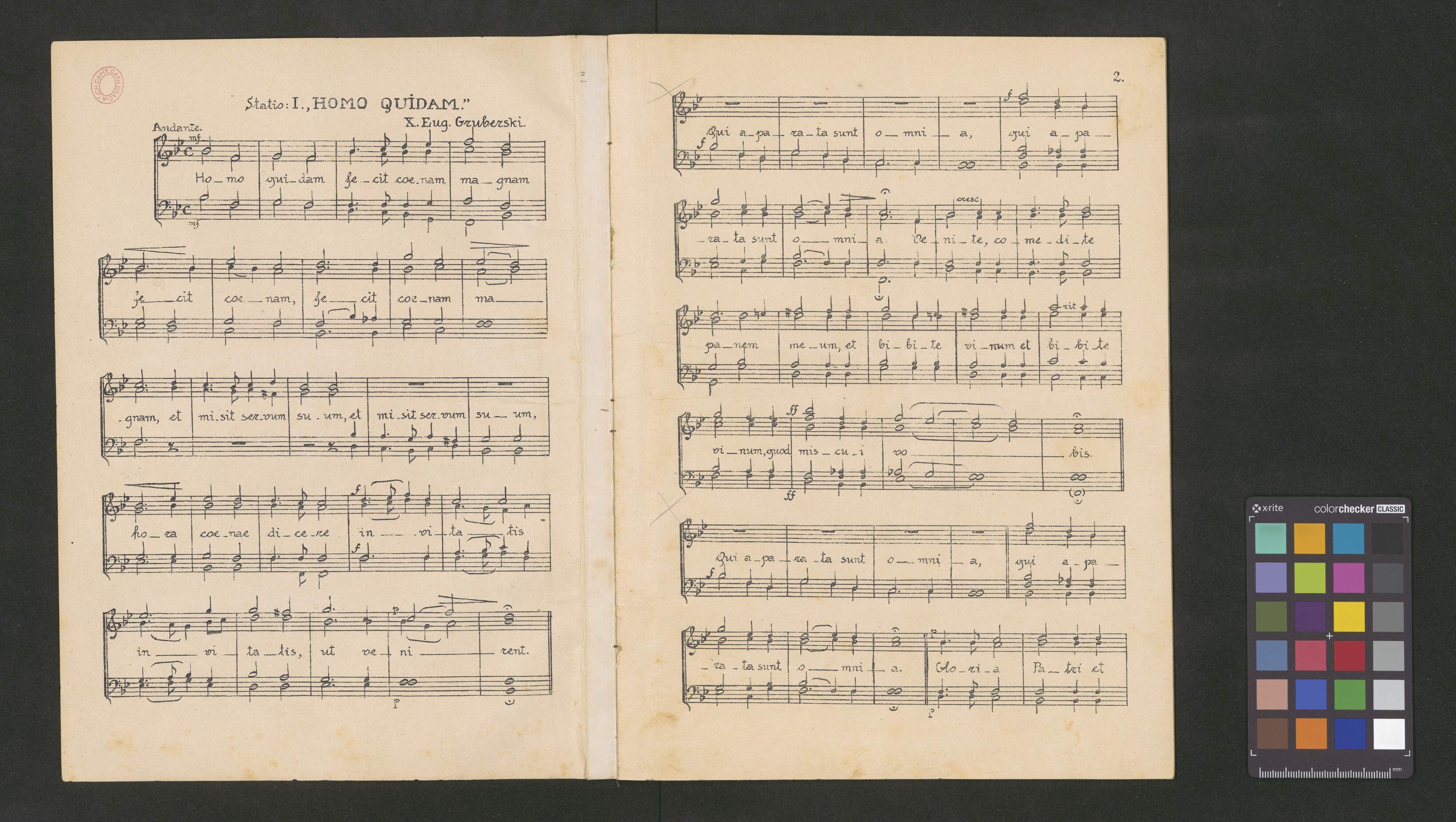 [caption title on page 1:] Statio: I., HOMO QUIDAM.” [caption title on page 3:] Statio: II. „IMMOLABIT HOEDUM”. [caption title on page 5:] Statio: III. RESPEXIT ELIAS. [caption title on page 7:] Statio: IV. „MISIT ME VIVENS PATER. [caption title on page 9:] O SACRUM CONVIVIUM