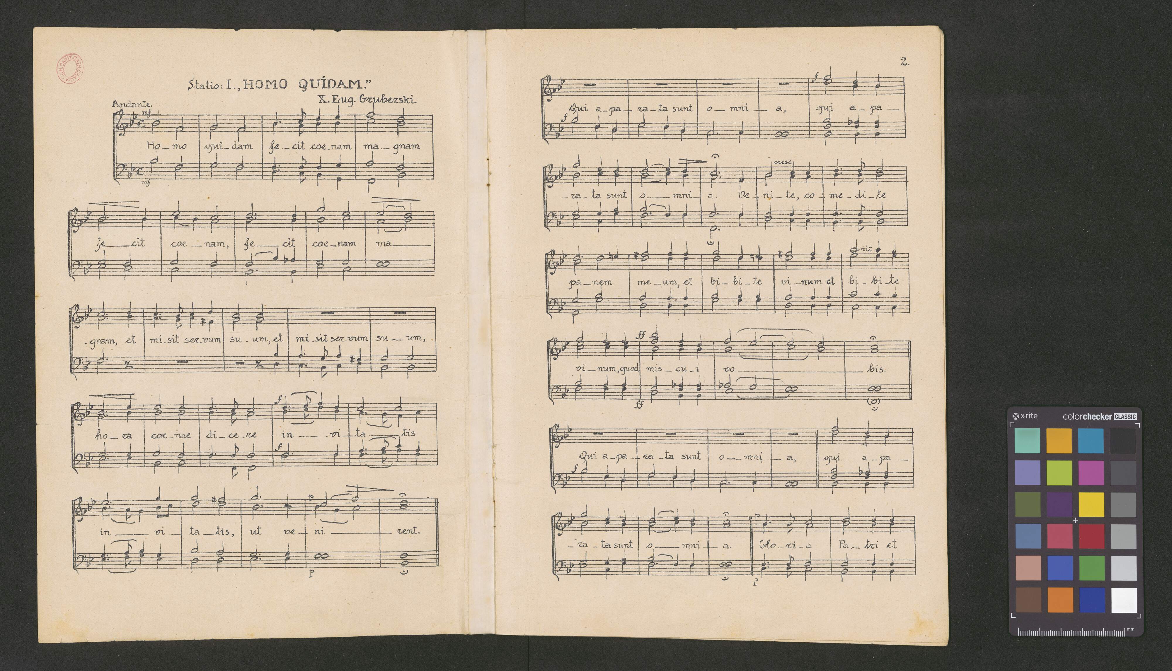 [caption title on page 1:] Statio: I., HOMO QUIDAM.” [caption title on page 3:] Statio: II. „IMMOLABIT HOEDUM”. [caption title on page 5:] Statio: III. RESPEXIT ELIAS. [caption title on page 7:] Statio: IV. „MISIT ME VIVENS PATER. [caption title on page 9:] O SACRUM CONVIVIUM