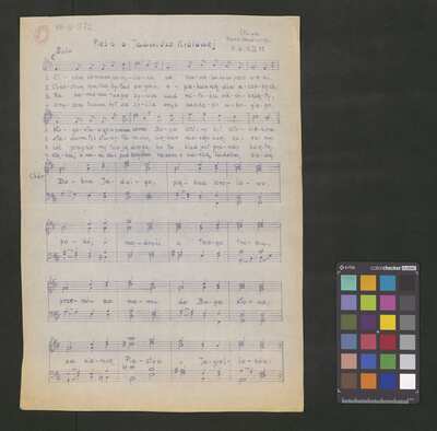 1 sacred song, [pl-text: Druk nieprofesjonalny, odbitka.], [pl-text: Na pierwszej stronie inskrypcja dotycząca kompozytora oraz daty powstania "M. W. 15. IX. 75".], [pl-text: Na pierwszej stronie wpisana ołówkiem sygnatura.], [pl-text: Pieczęć okrągła o treści "ARCHIWUM I BIBLIOTEKA | Krakowskiej Kapituły Katedralnej | KK-III- | 372" na drugiej stronie.], [pl-text: Mała, czerwona, owalna pieczęć "CATH. CRAC. * ARCH. CAPIT." na pierwszej stronie.]