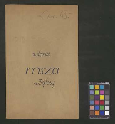 [pl-text: poprawki i tłumaczenie tekstu na polski dopisane ołówkiem], [pl-text: wewnątrz okładki okrągła pieczęć „ARCHIWUM I BIBLIOTEKA”, „Krakowskiej Kapituły Katedralnej” z wpisanym wewnątrz ołówkiem siglum „KK-III- | 387”], [pl-text: na 1. stronie owalna czerwona pieczątka „CATH. CRAC. * ARCH. CAPIT.”], Identification based on RISM ID no. 1001131223.