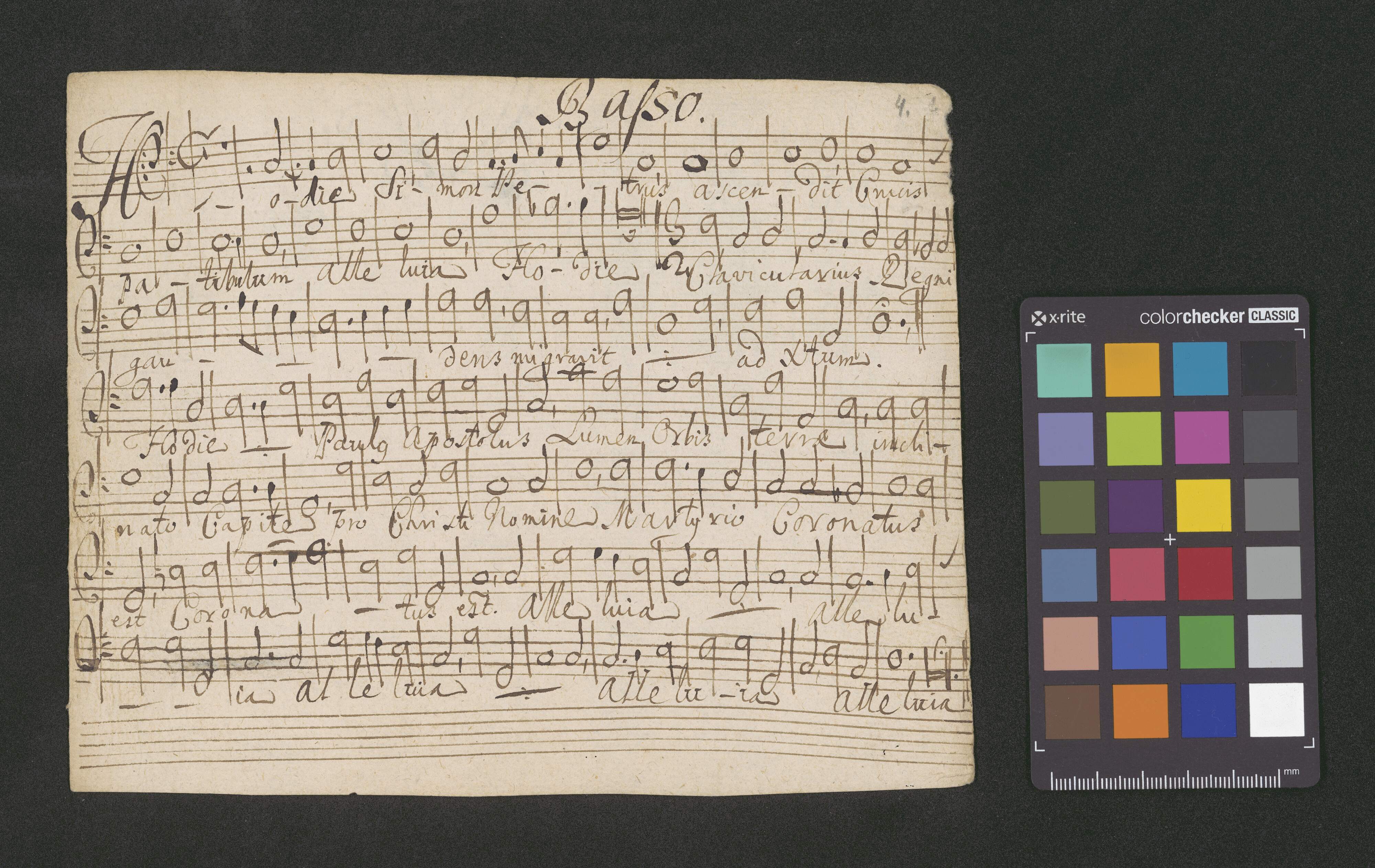De Scits Apostolis Petro & Paulo | ANTIPHONÆ II. | à 4 Voci Pari | Canto Alto Tenore Basso | 1ma. Hodie Simon Petrus | 2da. Gloriosi Principes terrae | O. ad M. D. G. | Pro Capella Regia | Ecclae Cath Crac
