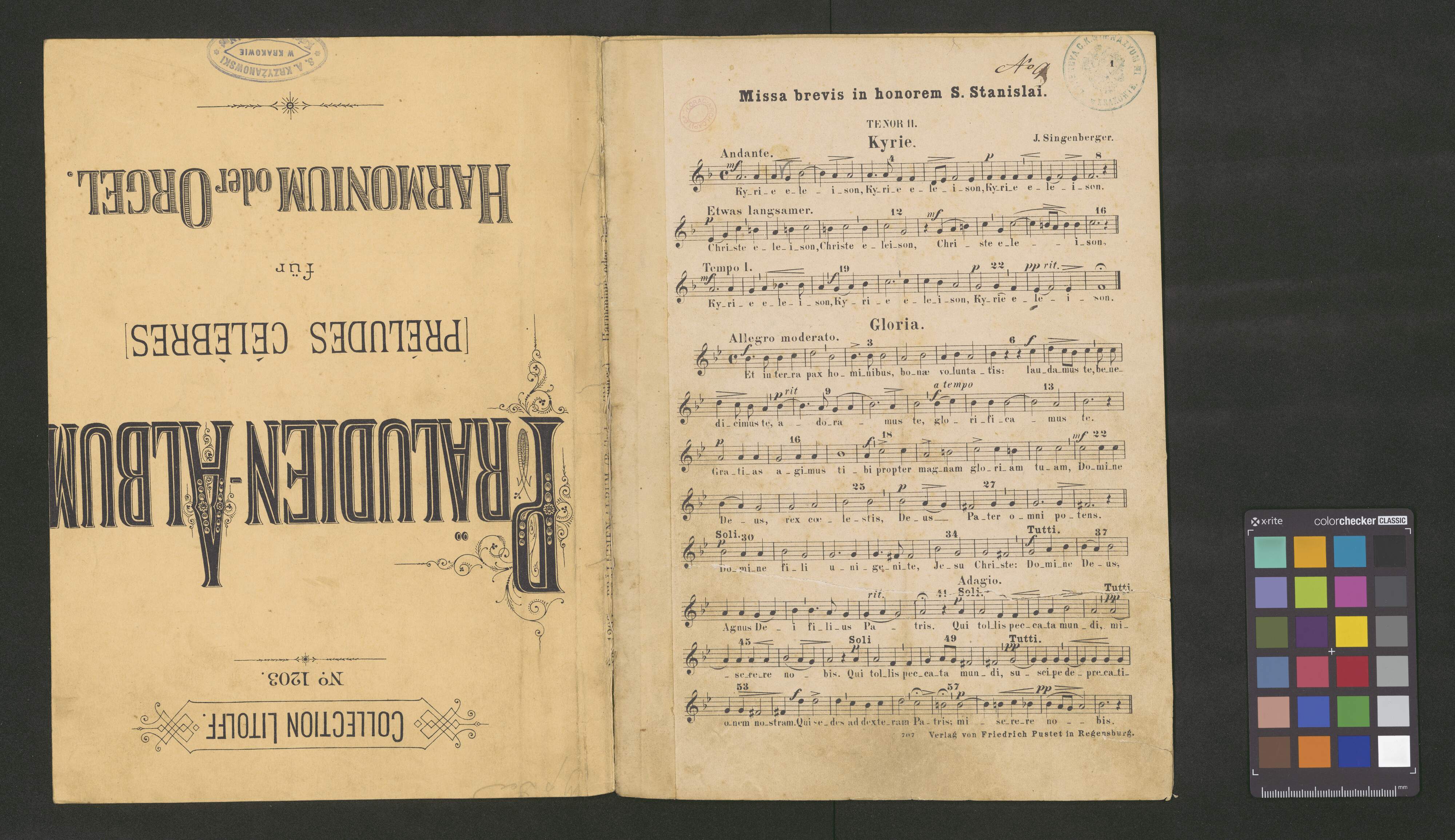 [title page from T 1 partbook:] tenor 1. | Missa brevis | in honorem St Stanislavi | J. Singenberger