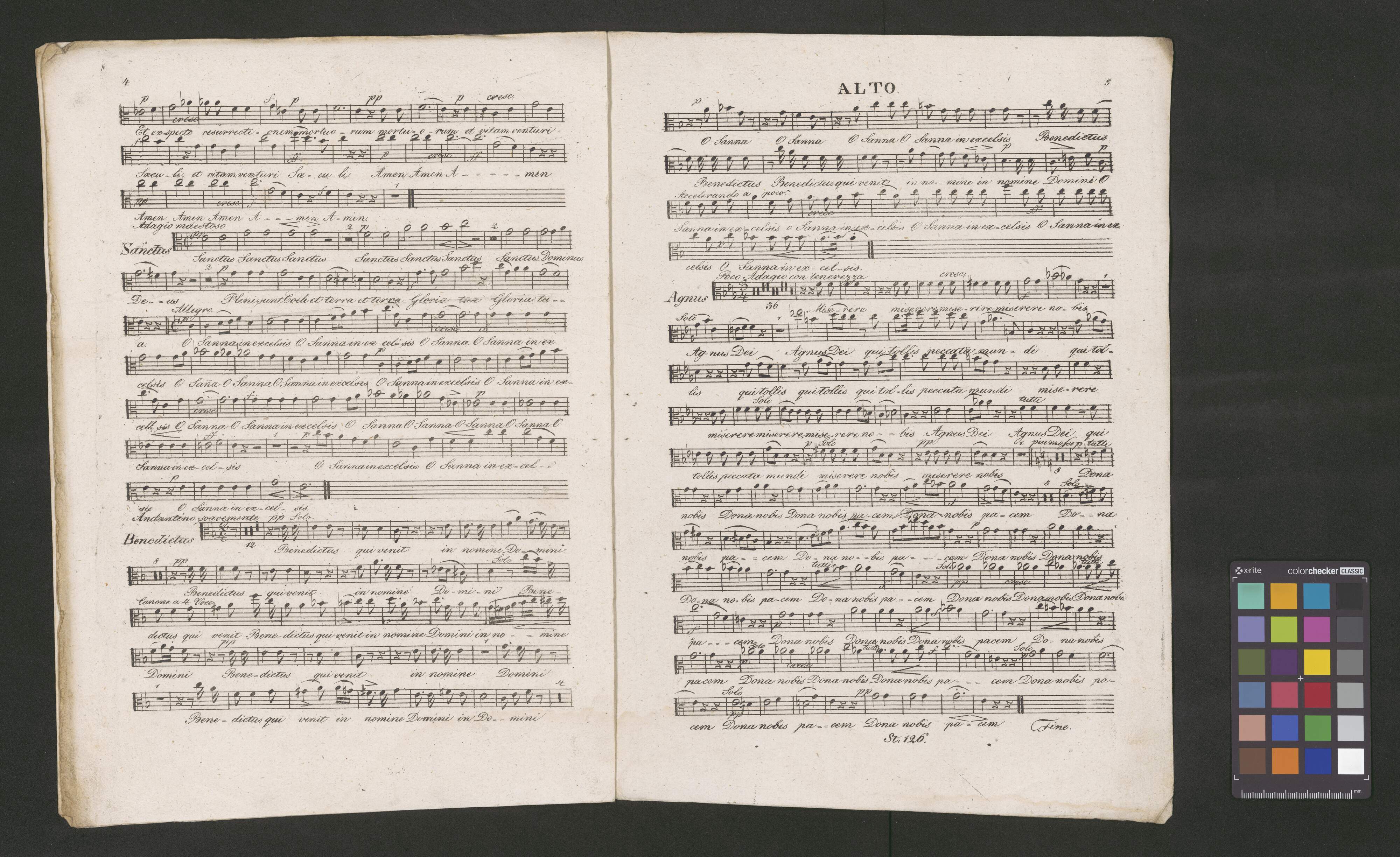 [title page:] MESSE | in C | leicht ausführbar für | 4 Singstimen, 2 Violinen, Viole, Bass, | Orgel, 1 Oboe (oder Clarinet) Fagott (oder Violoncello) obl: | (2 Horn, 2 Trompeten und Pauken ad libitum) | Componirt und | Seiner Kais: Konigl: Hohkeit und Eminenz, | dem Durchlauchtigsten Hochwürdigsten | HERRN HERRN ERZHERZOG | RUDOLPH von OESTERREICH | CARDINAL und ERZBISCHOFF von OLMÜTZ &. &. &. | in tiefster Ehrfurcht gewidmet | von | KAPELLMEISTER FR. STARKE. | [at left:] Werk 126. [center:] WIEN [at right:] Pr 4 fl:C.M. | Zu finden bey dem Verfasser | oder in der Kunsthandlung des Herrn H: Müller am Kohlmarkt. | N,,|o 1150