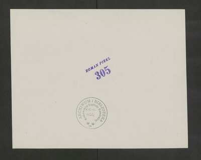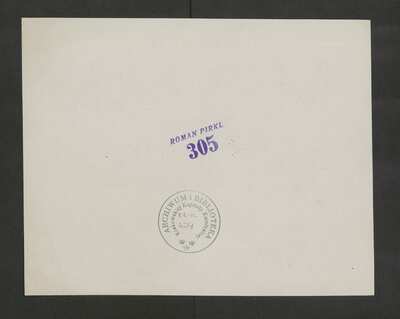 [pl-text: na stronach recto czerwona pieczątka „CATH. CRAC. * ARCH. CAPIT.”], [pl-text: na stronach verso fioletowa pieczątka „ROMAN PIRKL I 305”], [pl-text: na stronach verso czarna okrągła pieczęć „ARCHIWUM I BIBLIOTEKA”, „Krakowskiej Kapituły Katedralnej” z dopisaną ołówkiem sygnaturą „KK-III- I 424”]