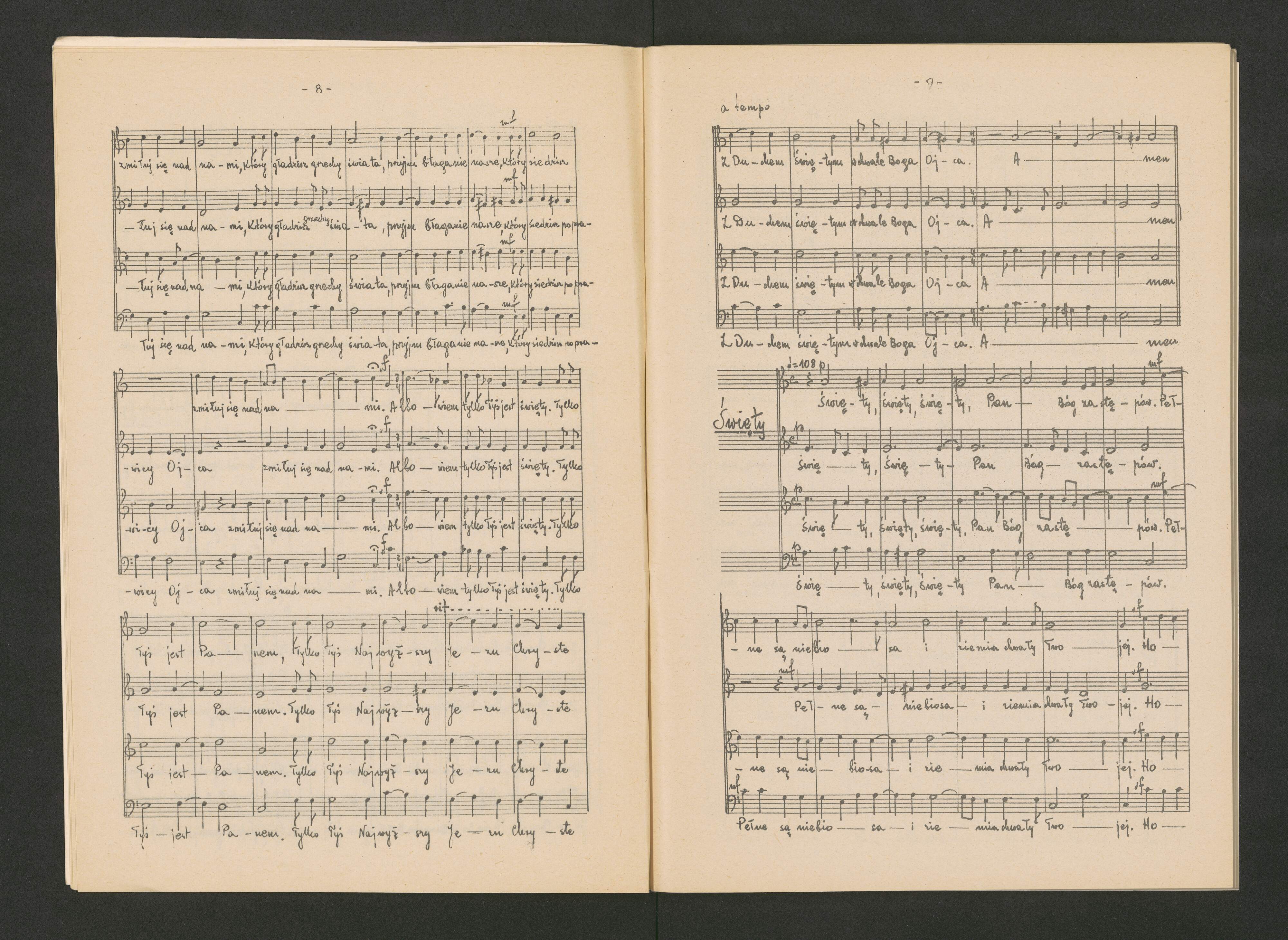 [title page:] M S Z E | WIELOGŁOSOWE | W JĘZYKU POLSKIM | Józef KROMOLICKI Pompeio CANNICIARI | Jacek RÓŻYCKI Oreste RAVANELLO | Ks. Wojciech LEWKOWICZ Tadeusz JARZĘCKI | opracował TADEUSZ JARZĘCKI | WARSZAWA | 1974