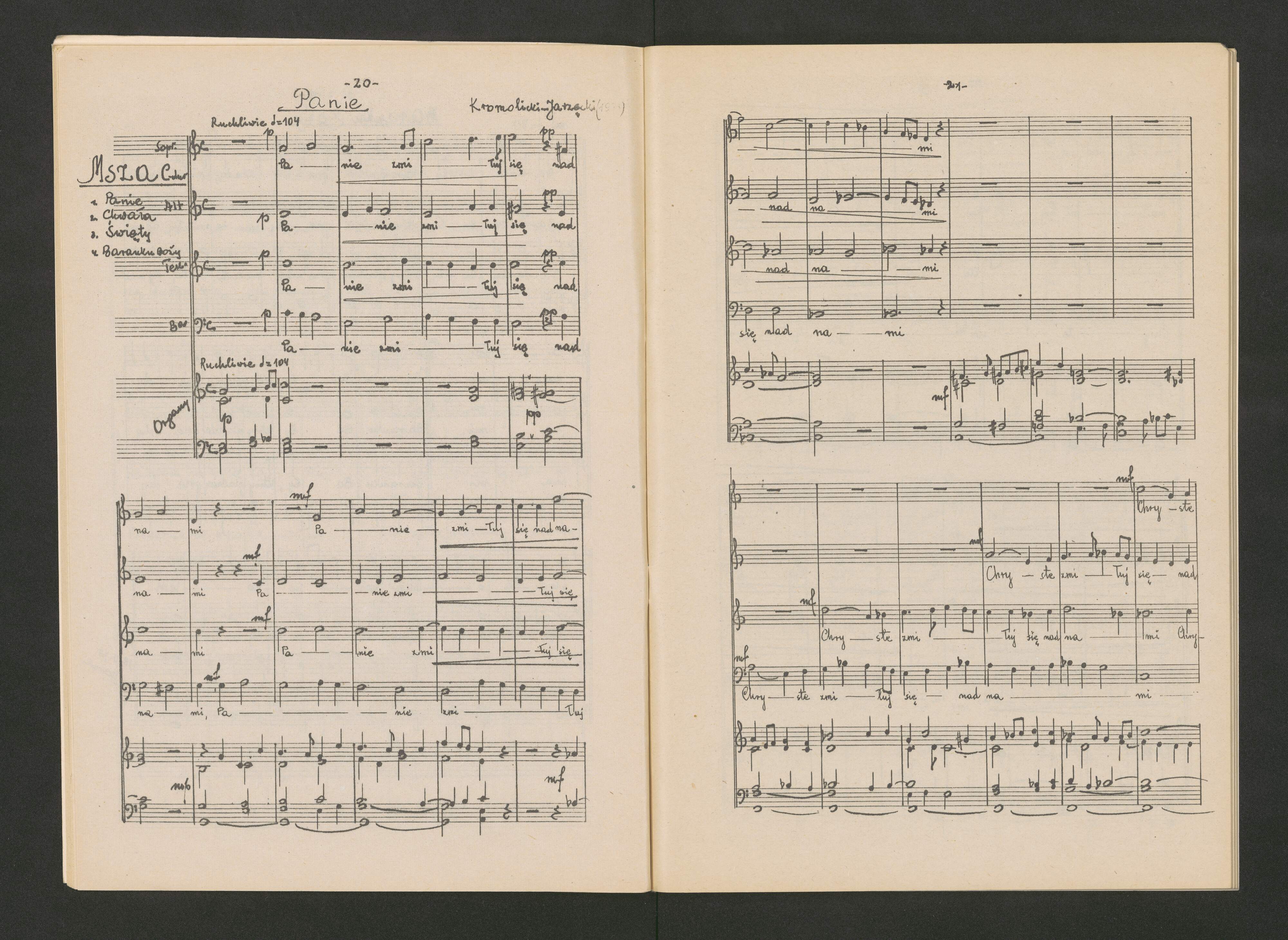 [title page:] M S Z E | WIELOGŁOSOWE | W JĘZYKU POLSKIM | Józef KROMOLICKI Pompeio CANNICIARI | Jacek RÓŻYCKI Oreste RAVANELLO | Ks. Wojciech LEWKOWICZ Tadeusz JARZĘCKI | opracował TADEUSZ JARZĘCKI | WARSZAWA | 1974