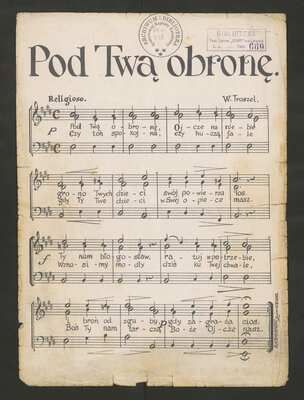 [pl-text: Przy końcowej kresce taktowej obu partytur nadrukowane: "E. KAMIAŃSKI Lwów 10.V.1932.".], [pl-text: W sygnaturze znajduje się 8 zestawów druku.], [pl-text: Pieczęć: „ARCHIWUM I BIBLIOTEKA”, „Krakowskiej Kapituły Katedralnej” wraz z wpisaną sygnaturą na pierwszej stronie każdego zestawu. Pieczęć: „CATH. CRAC. * ARCH. CAPIT.” na drugiej stronie każdego zestawu. Ponadto na wszystkich pierwszych stronach umieszczono prostokątkną niebieską pieczęć: "BIBLIOTEKA * Tow. Spiew. "ECHO" we Lwowie * L.p. (puste miejsce) Teka 669 (numer innym tuszem)".], [pl-text: Brzegi kart niszą różne ślady zniszczenia, niektóre karty czymś zalane.]