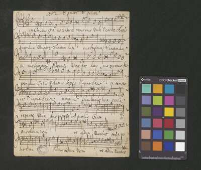 [pl-text: Pieczęć: "CATH. CRAC. * ARCH. CAPIT." na stronach recto wszystkich głosów.], [pl-text: Pieczęć: „ARCHIWUM I BIBLIOTEKA”, „Krakowskiej Kapituły Katedralnej” na drugiej stronie obwoluty.], [pl-text: Foliacja w źródle naniesiona ołówkiem.], [pl-text: Partia B rip na karcie o innych wymiarach: 8 x 15,5 cm.], [pl-text: Poszczególne głosy nie są podpisane.]