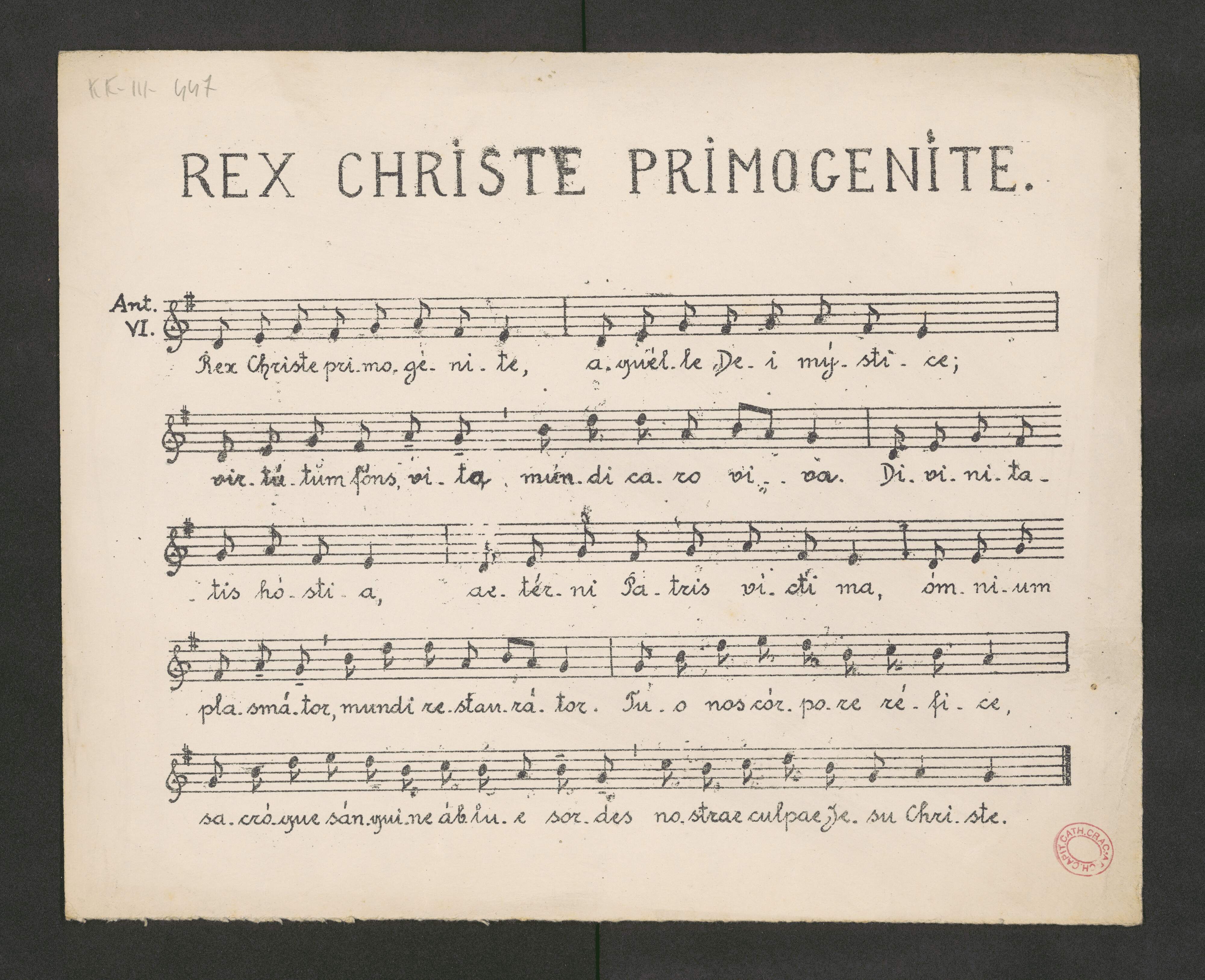 [caption title:] REX CHRISTE PRIMOGENITE