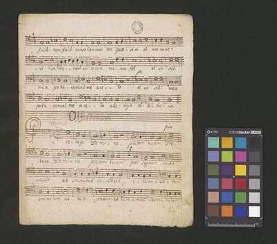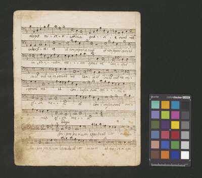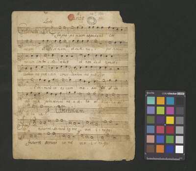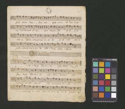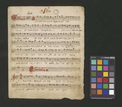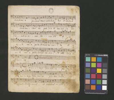 [pl-text: Pieczęć: "CATH. CRAC. * ARCH. CAPIT." na stronach recto wszystkich kart.], [pl-text: Na pierwszej stronie rękopisu wpisana ołówkiem sygnatura.], [pl-text: Foliacja w źródle naniesiona ołówkiem.], [pl-text: Na początku partii A część liter i znaków zamalowana czerwonym kolorem.]