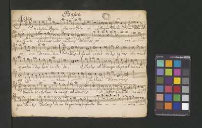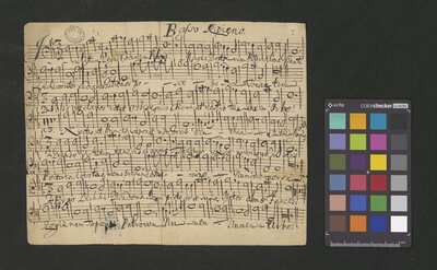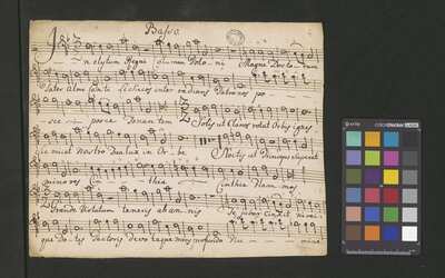 [pl-text: Pieczęć: "CATH. CRAC. * ARCH. CAPIT." na stronach recto wszystkich głosów.], [pl-text: Foliacja w źródle naniesiona ołówkiem.], [pl-text: Na pierwszej stronie rękopisu wpisana ołówkiem aktualna sygnatura.], [pl-text: Na końcu ostatniego egzemplarza partii B inskrypcja "O. ad M.D.G." ze spiralnym ornamentem.], [pl-text: Ostatni egzemplarz partii B spisany na karcie o wymiarach 16,5 x 20,5 cm.]