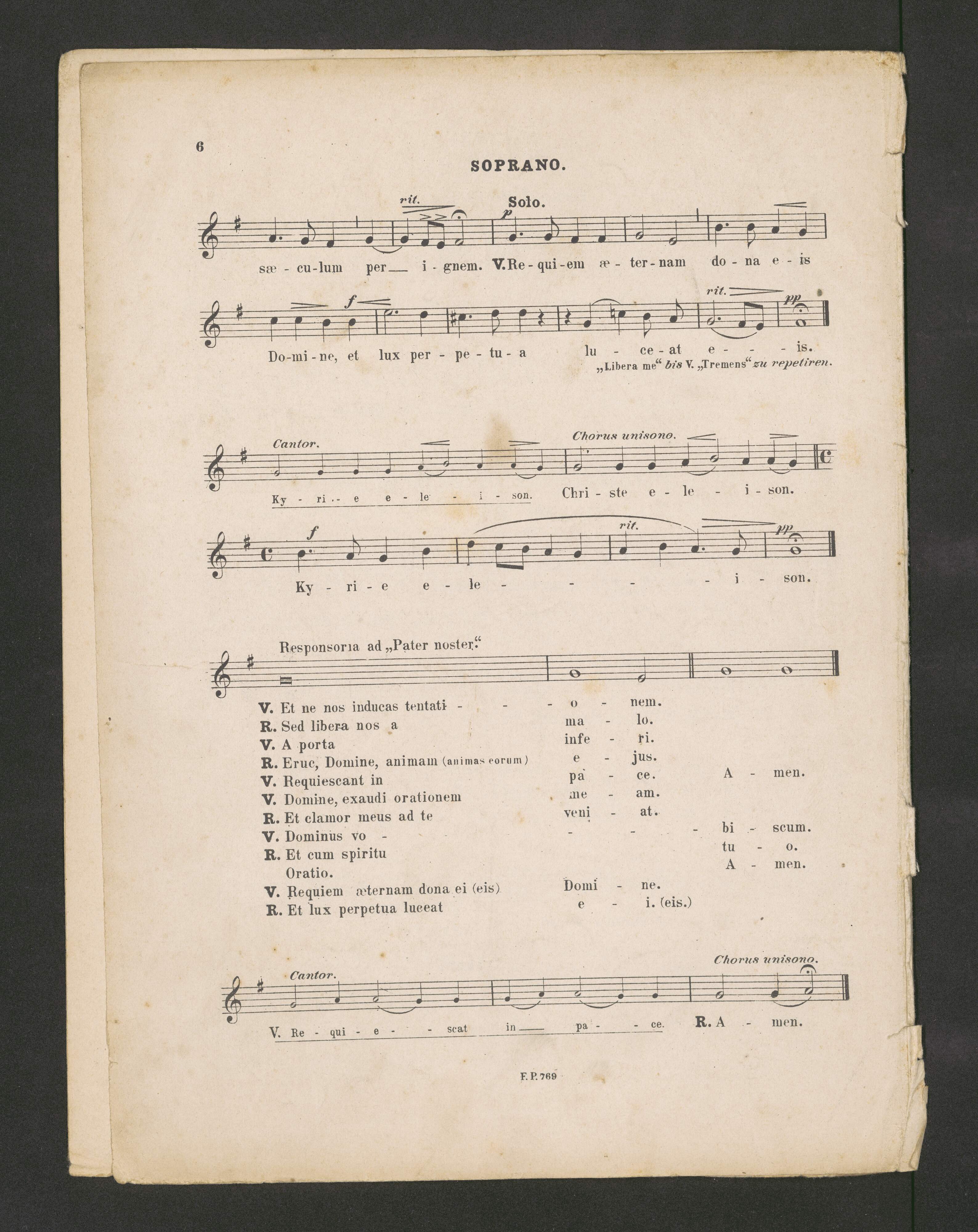 [score, title page:] Requiem | sammt Responsorien und Libera | für | Sopran, Alt, Bass ad libitum, | (oder auch eine Stimme allein) | und | Orgel. | Von | J. Singenberger. | Editio tertia | [...]